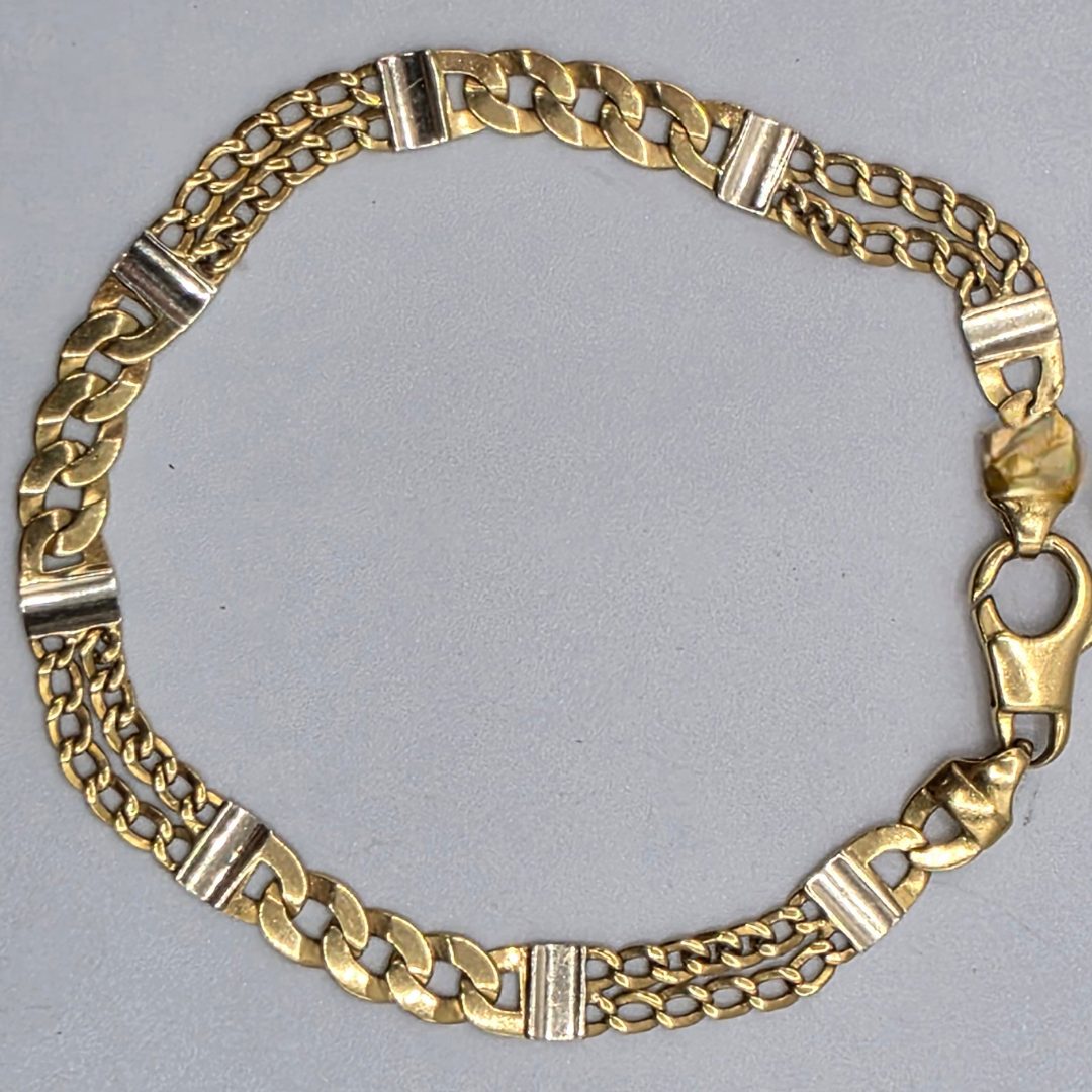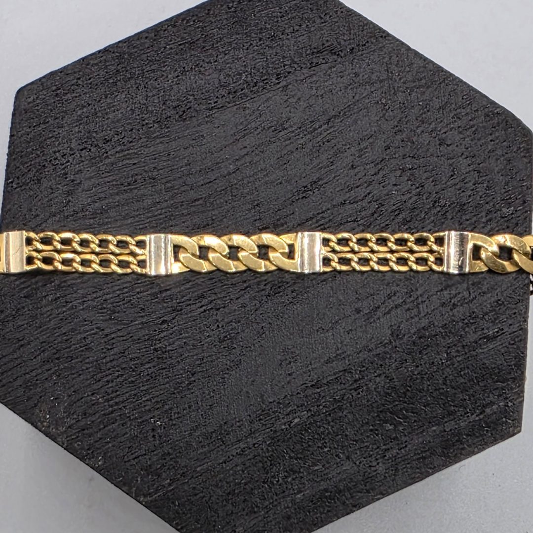 Pulsera Cubana con Intervalos de una Cubana y Otras de Dos en Oro de 18K