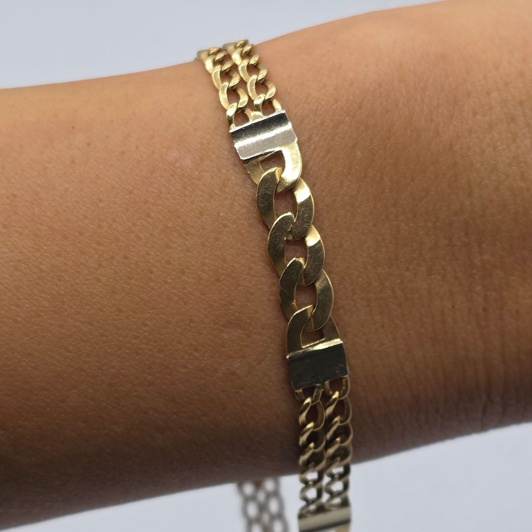 Esta pulsera cubana en oro de 18 quilates presenta un diseño único, con intervalos de eslabones cubanos de una y dos unidades, creando un patrón dinámico y elegante.