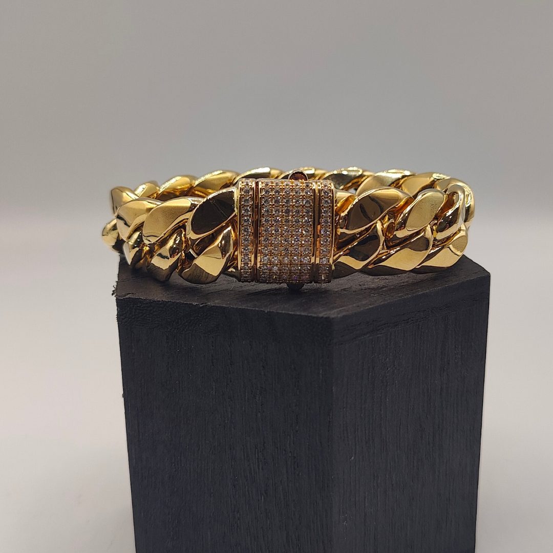 Perfecta para quienes buscan una joya con presencia y estilo, esta pulsera combina la versatilidad del diseño cubano con el brillo del oro de 18K, convirtiéndola en el accesorio ideal para cualquier ocasión especial o para darle un toque especial.