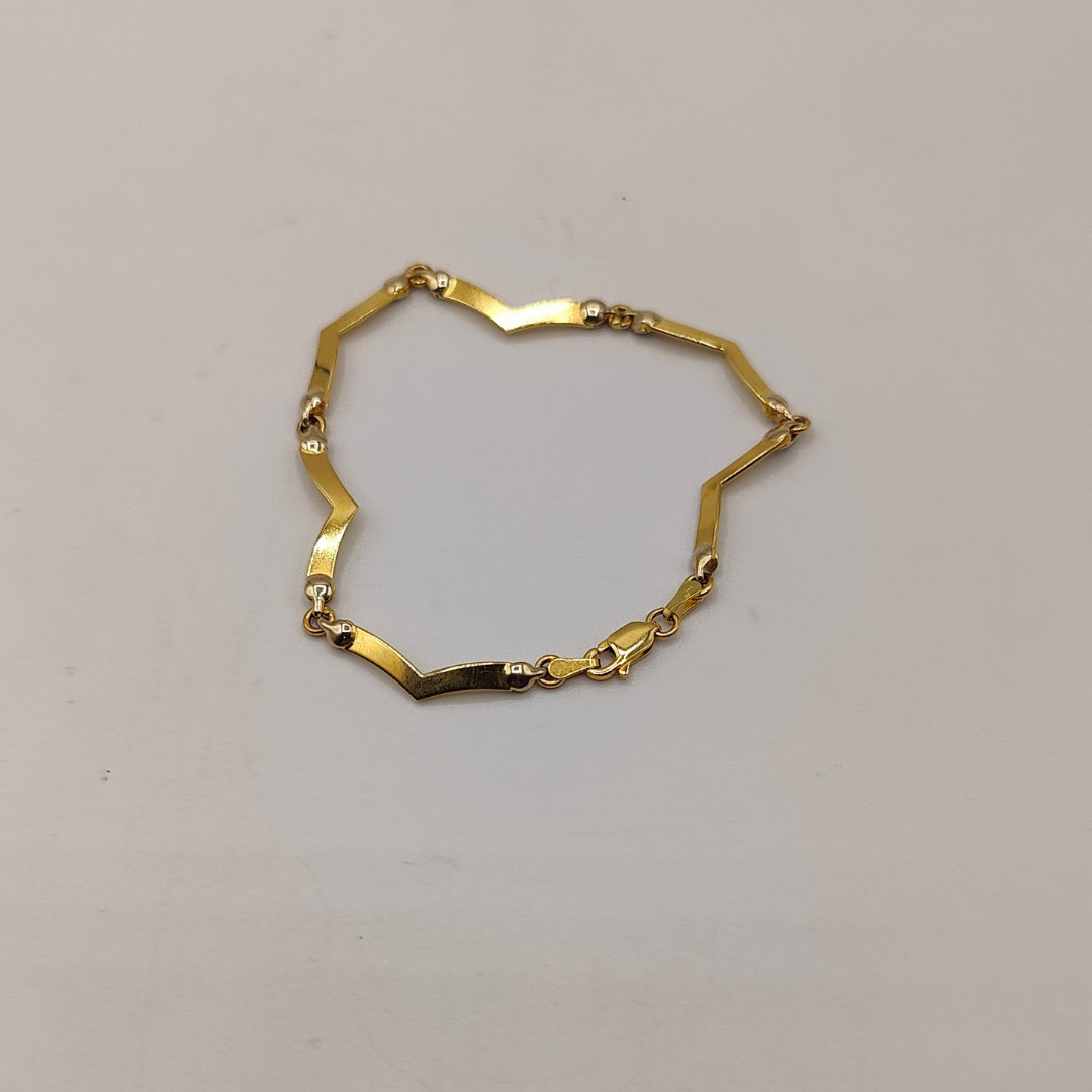 La pulsera de hondas en puntas es una pieza distintiva que destaca por su diseño geométrico y elegante. Su estructura se caracteriza por un patrón de ondas que culminan en puntas, creando un efecto visual dinámico y moderno. Esta pulsera combina la fluidez del diseño con una estética refinada, ideal para quienes buscan un accesorio que mezcle originalidad y sofisticación. Perfecta para realzar tanto atuendos casuales como formales, la pulsera de hondas en puntas es una elección única para añadir un toque de estilo contemporáneo a tu colección de joyería.