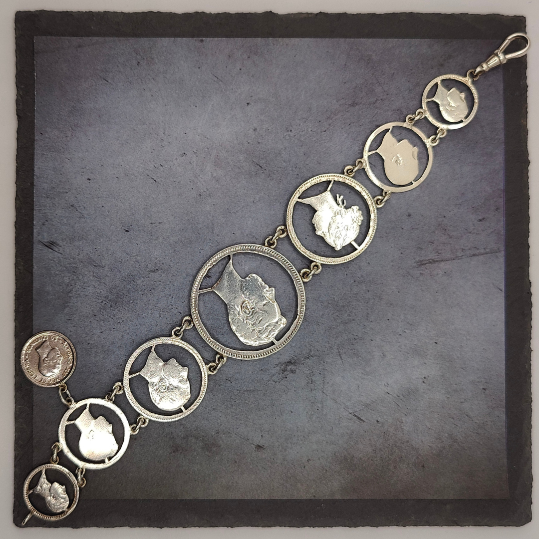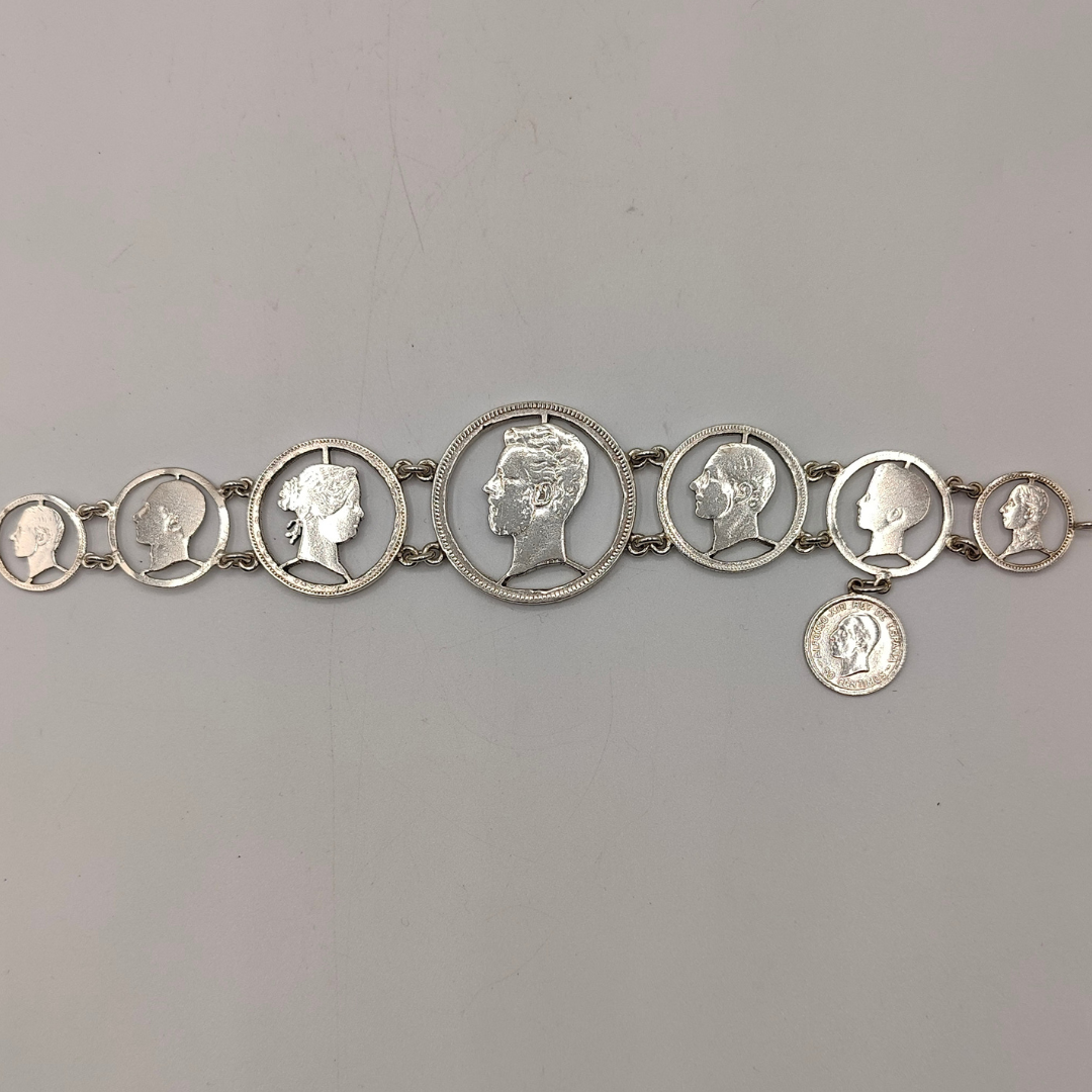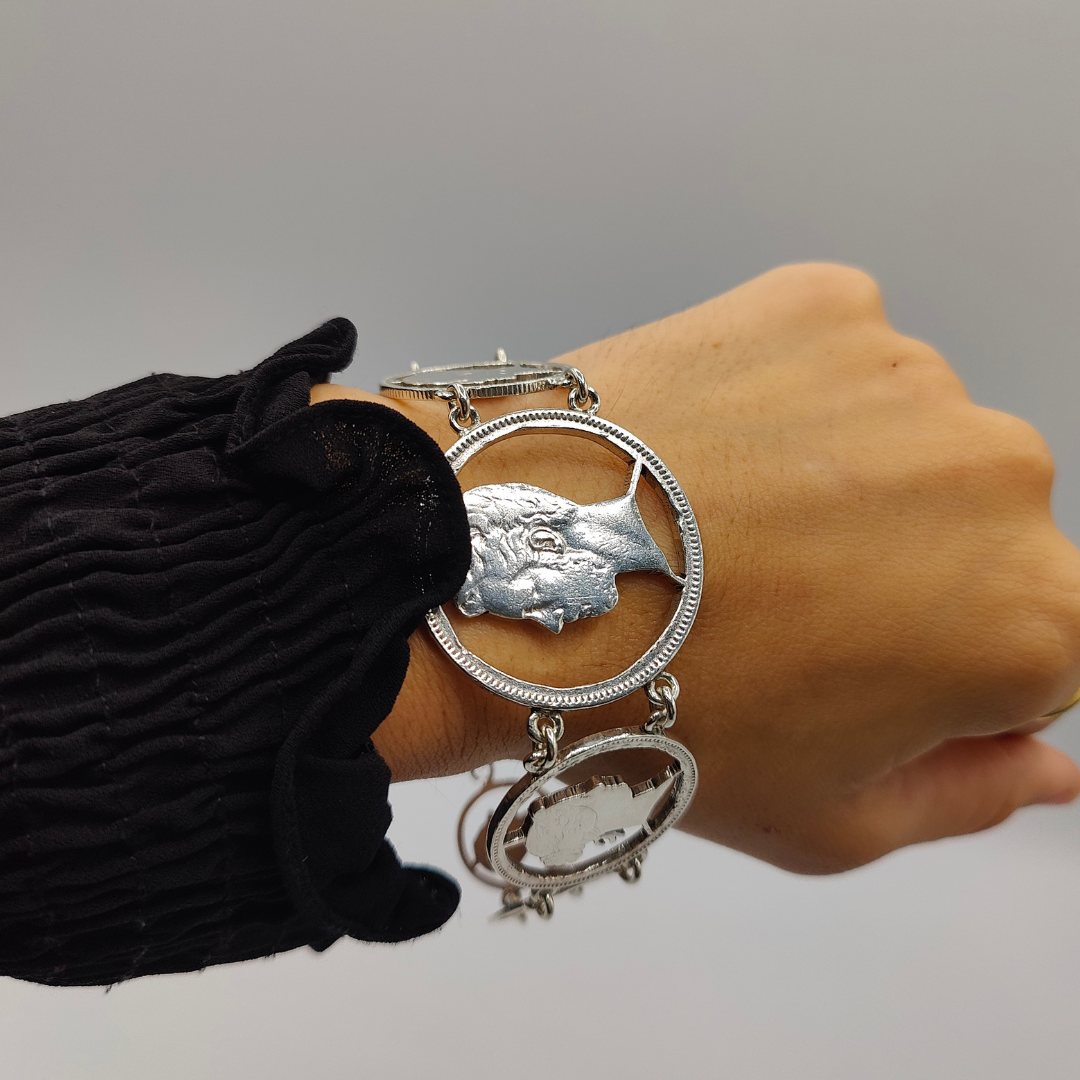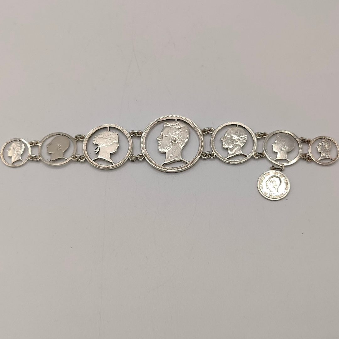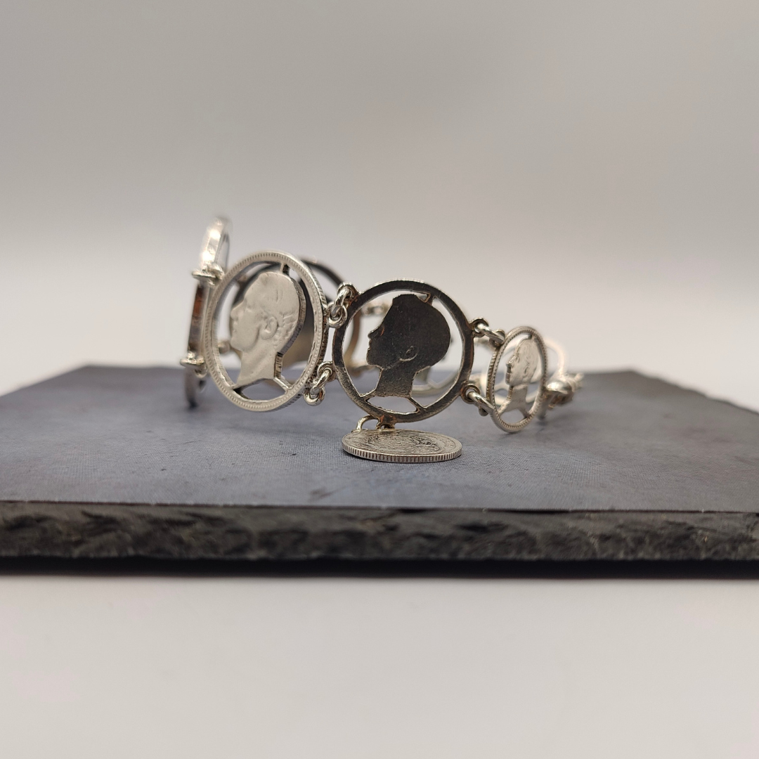 Esta elegante pulsera combina el encanto de las monedas antiguas con el brillo atemporal de la plata pura. Cada moneda ha sido seleccionada cuidadosamente.