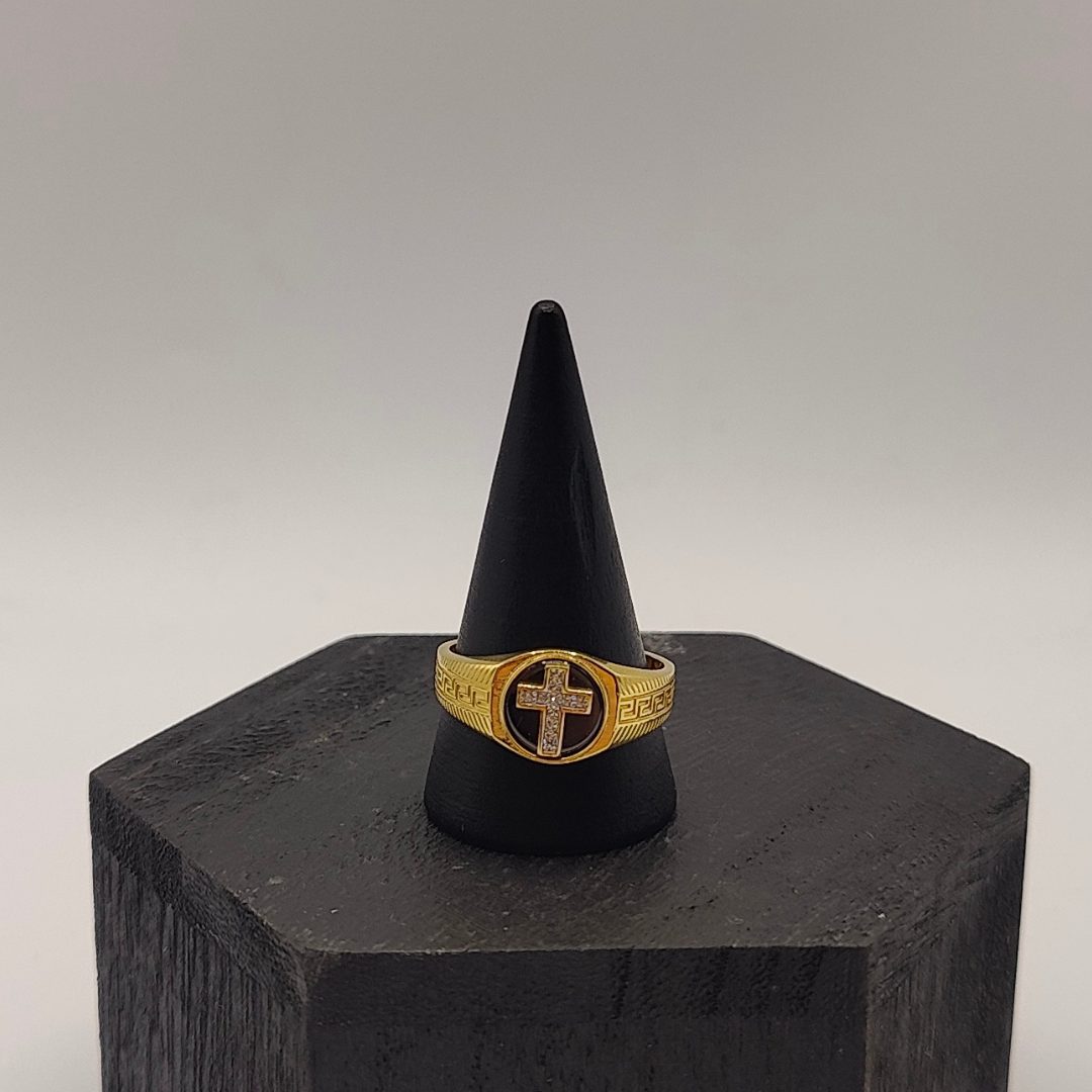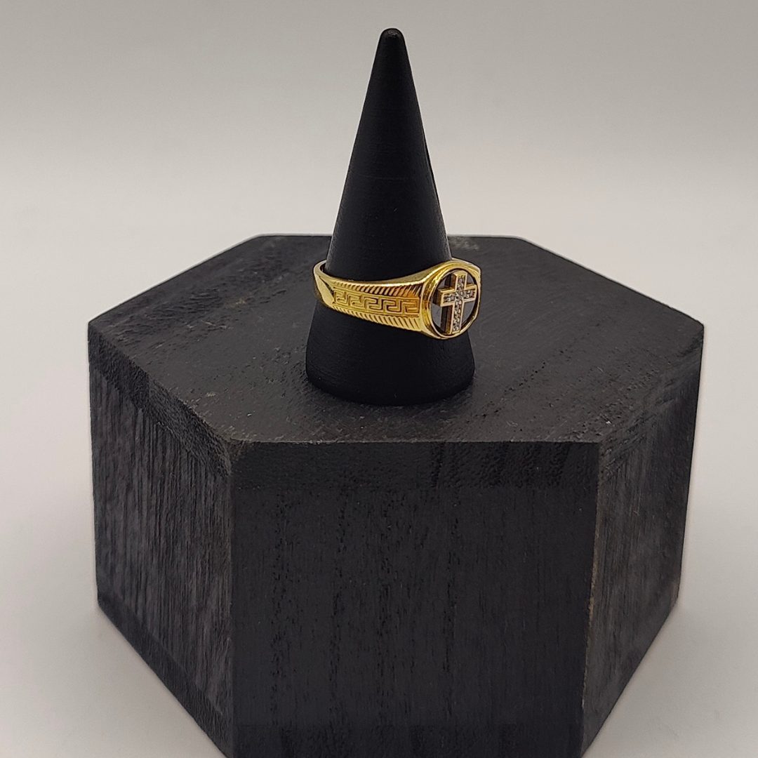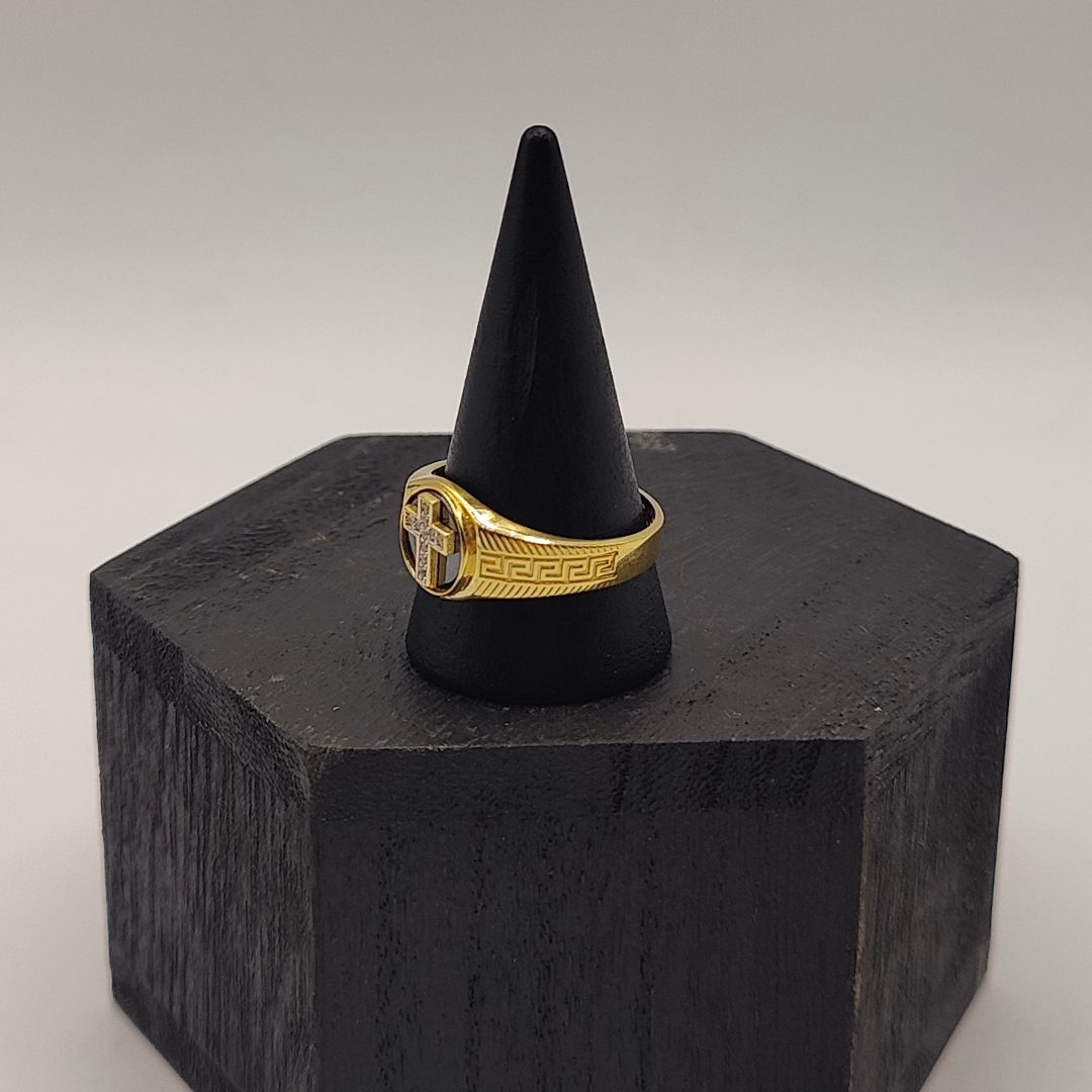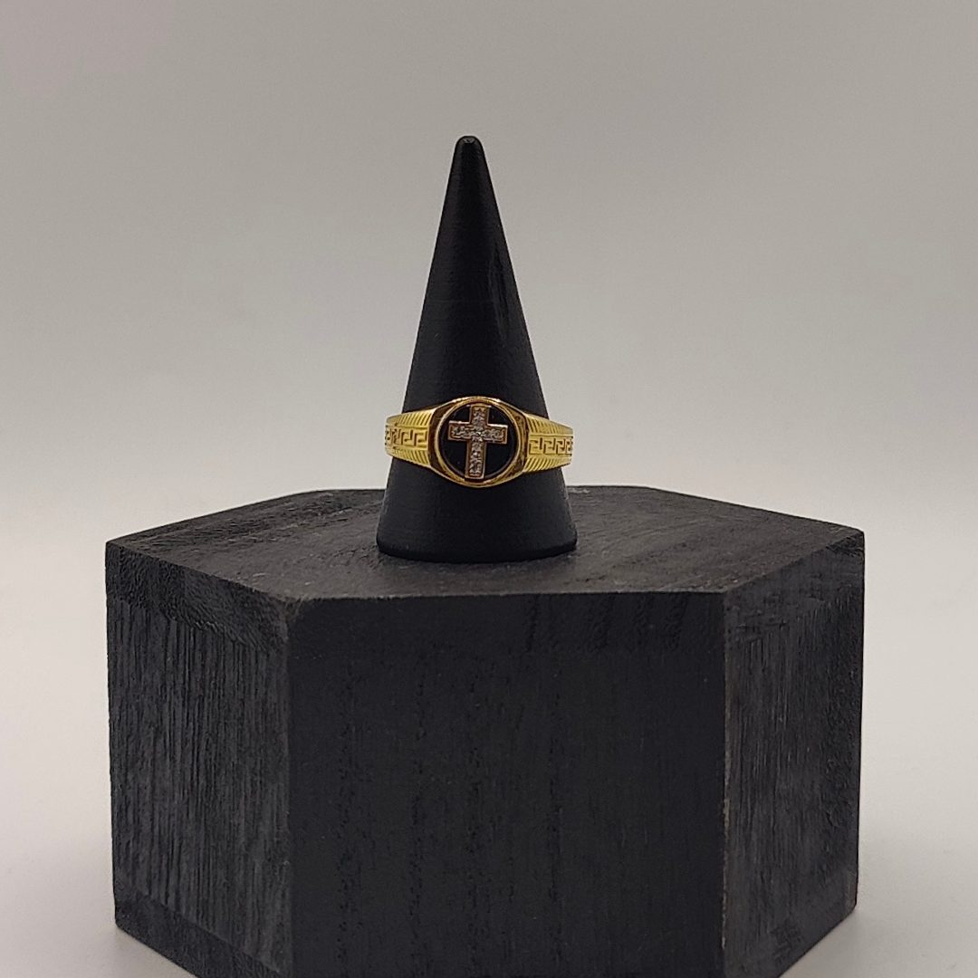 Anillo Sello con Cruz de Circonitas en Oro de 18K T:24