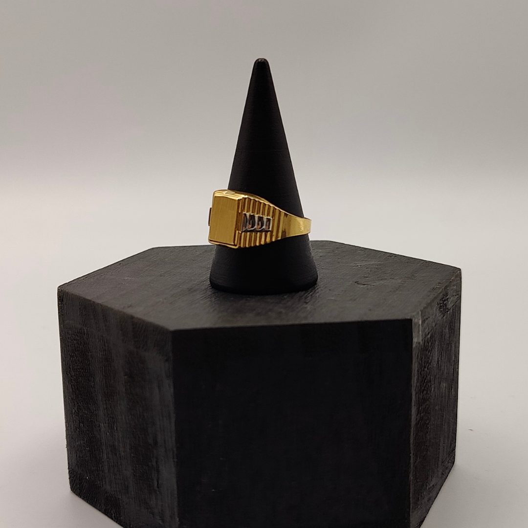 Anillo Sello con Detalles de Oro Blanco en los Laterales en Oro de 18K T:22
