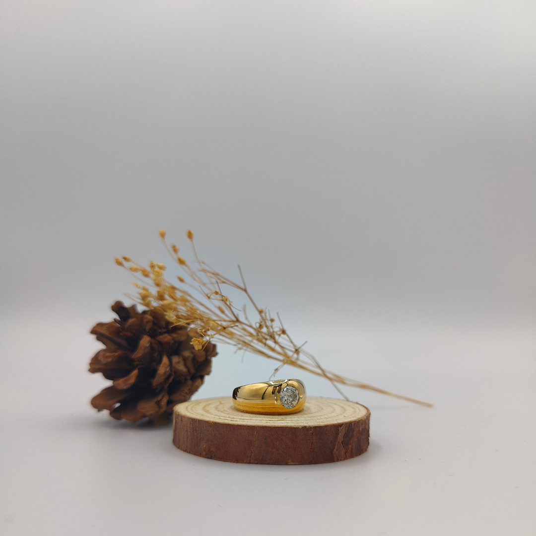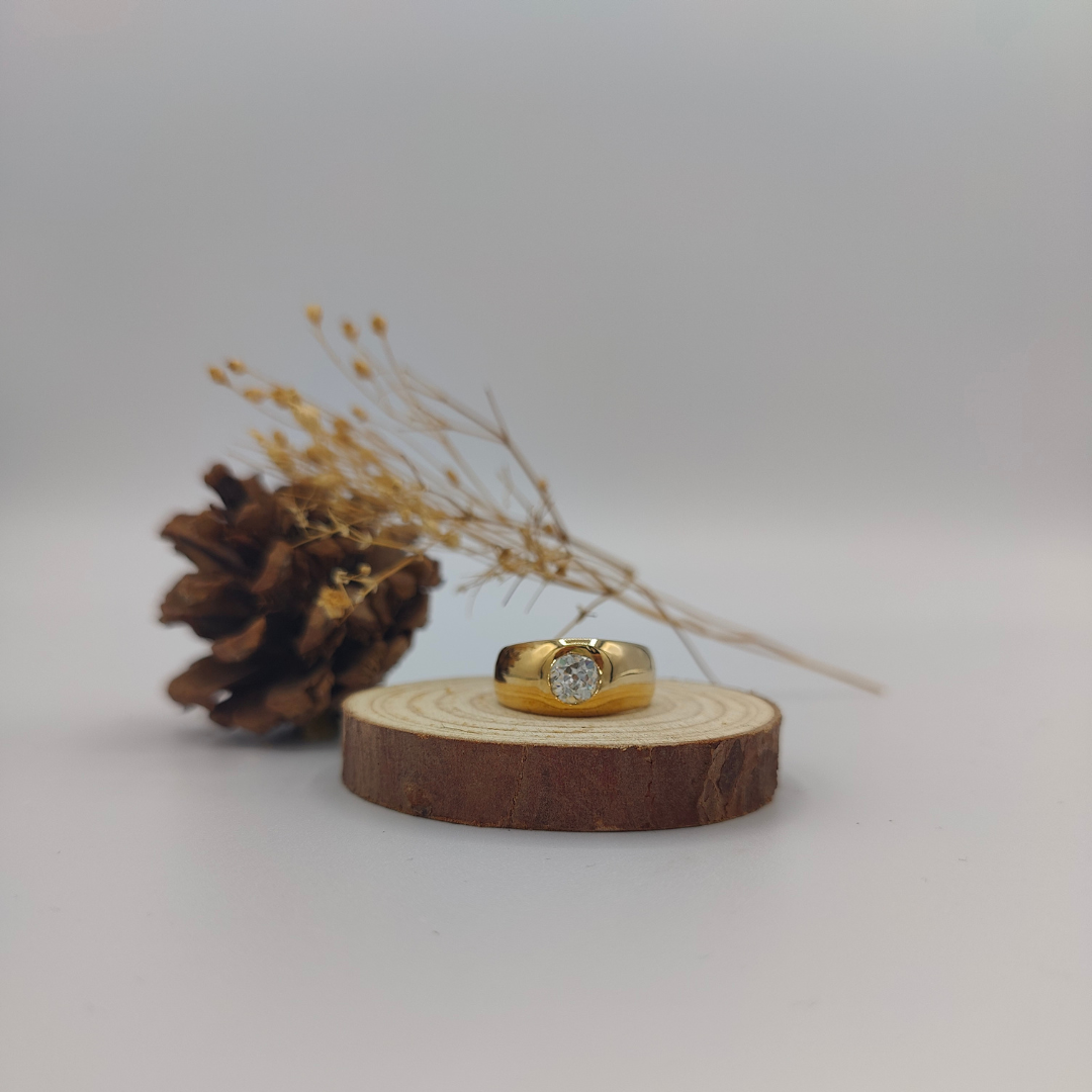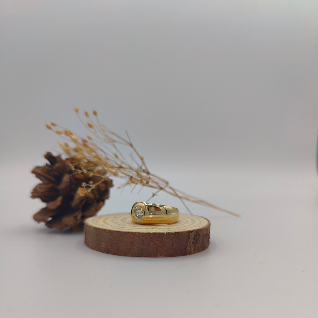 Un anillo grueso con un diamante espectacular en el medio es una pieza clásica y atemporal. El diamante central es el punto focal, atrayendo la tención y añadiendo un toque de elegancia a la joya.