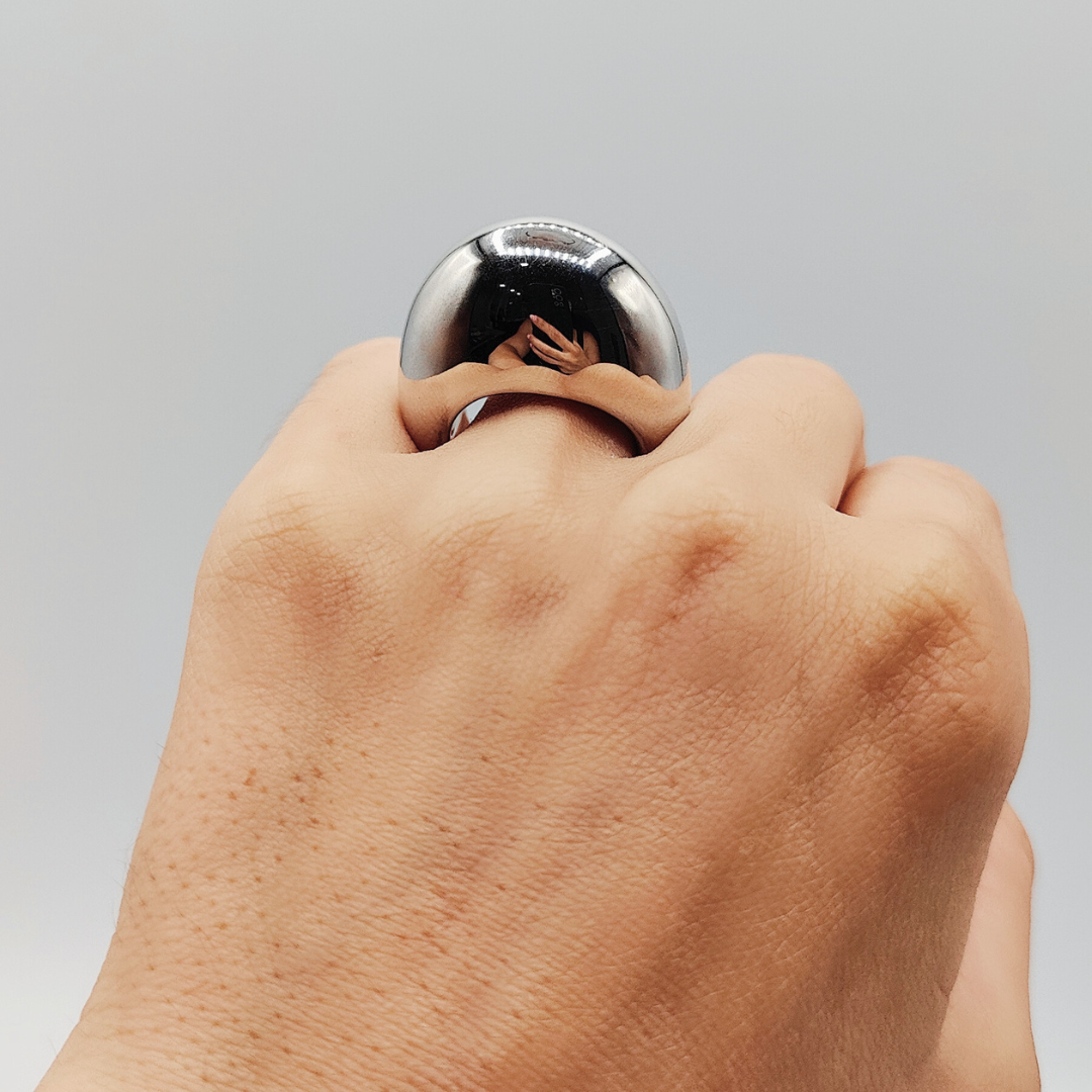 Este anillo abombado de plata es una pieza que destaca por su diseño elegante y contemporáneo. La forma abombada le confiere un perfil distintivo y atractivo.
