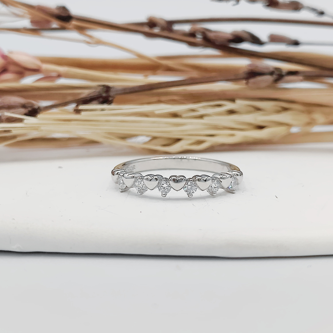 ¡Deja que tu amor brille con nuestro anillo de plata! 💍💖 Este encantador diseño presenta circonitas intercaladas con corazones, que añaden un toque de romance y dulzura a tu look.