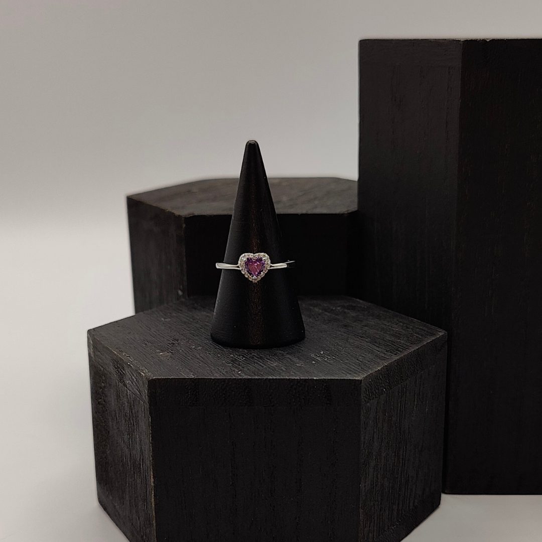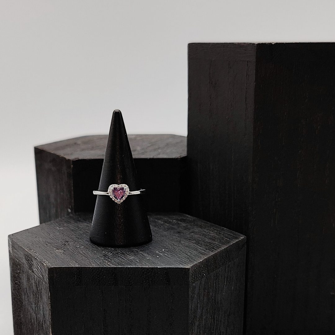 Luce la elegancia y el encanto con este anillo de plata con corazón y circonita lila , una joya delicada y sofisticada que simboliza el amor y la feminidad.