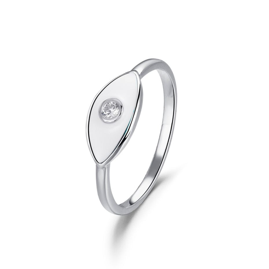 Anillo de Plata Rodiada con Ojo Esmaltado Blanco y Circonita T:15