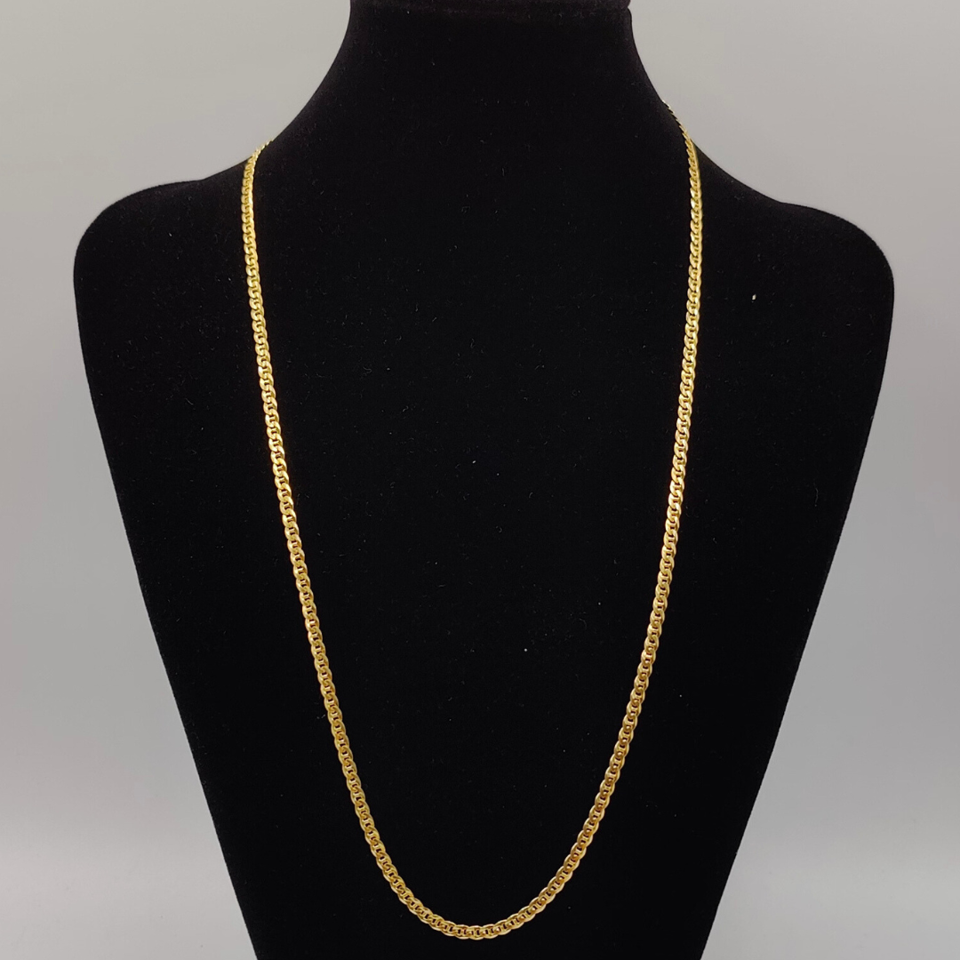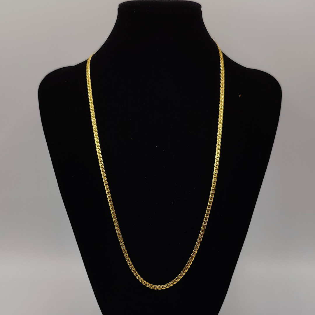 Eleva tu estilo con esta elegante cadena barbada doble, diseñada para quienes aprecian la calidad y el diseño clásico. Con una longitud de 60 cm y un ancho de 3 mm
