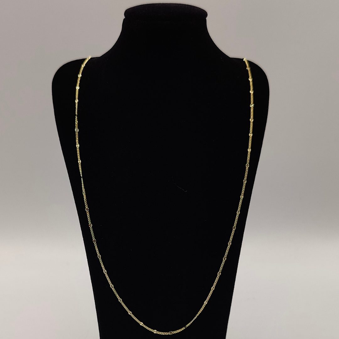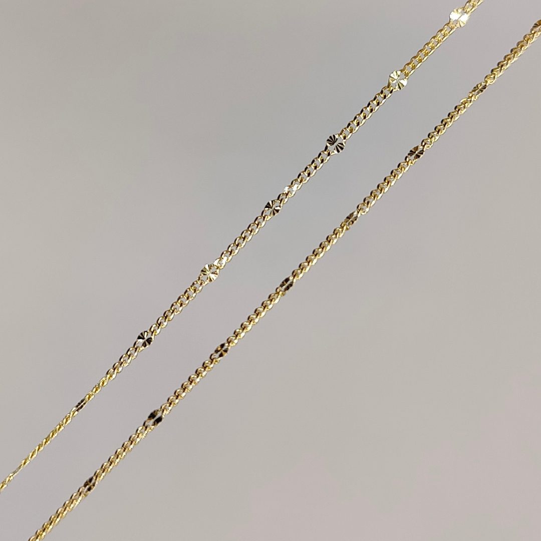Descubre la elegancia atemporal con nuestra cadenita cubana de oro 18K, diseñada para destacar con su fina confección y acabado impecable. Con 50 cm de longitud y un grosor de 1 mm.