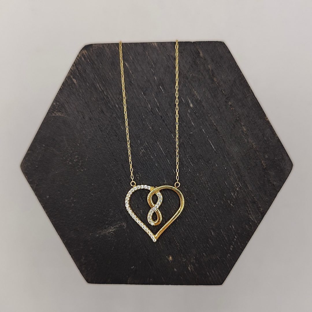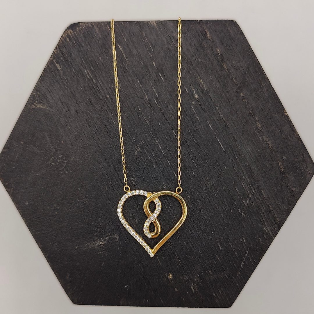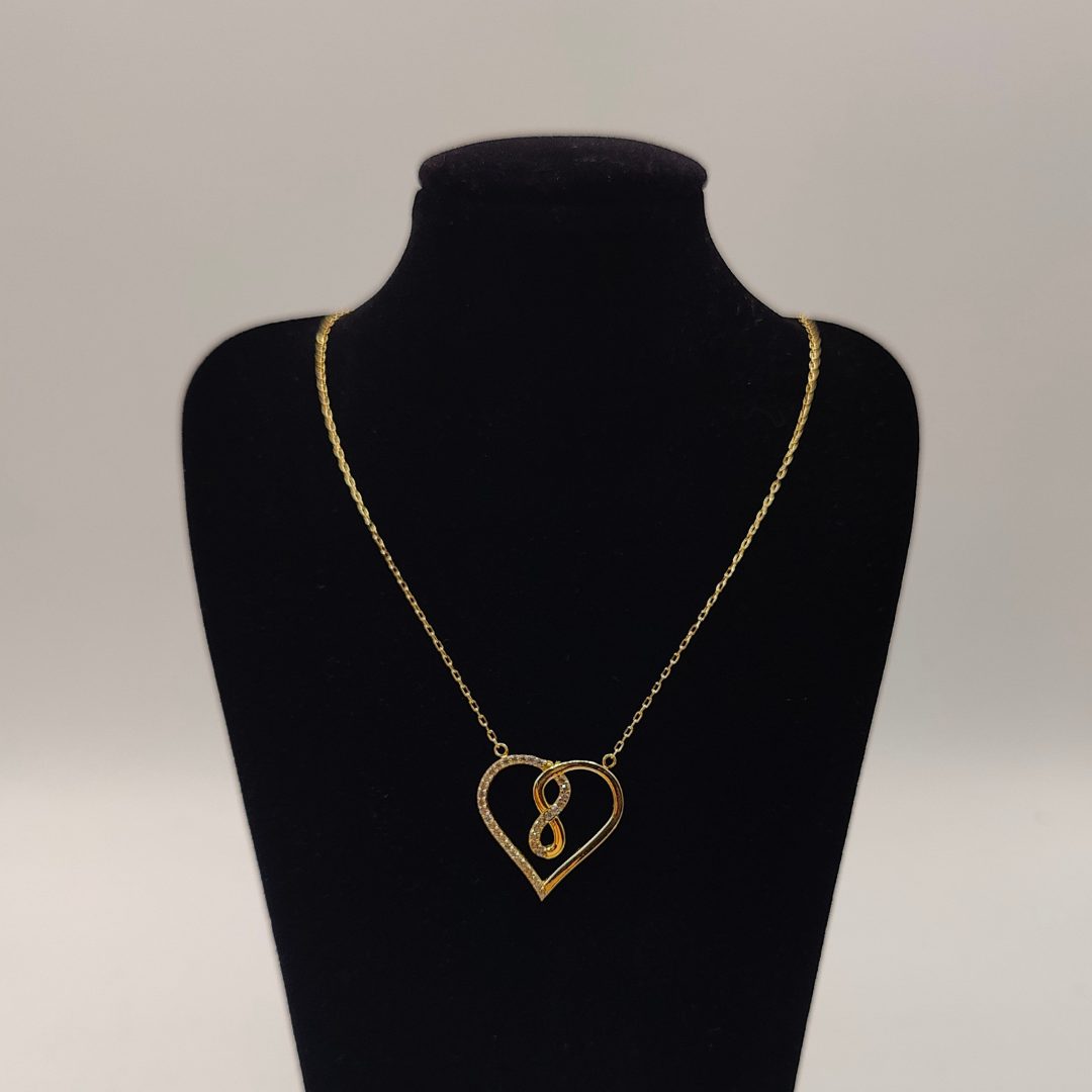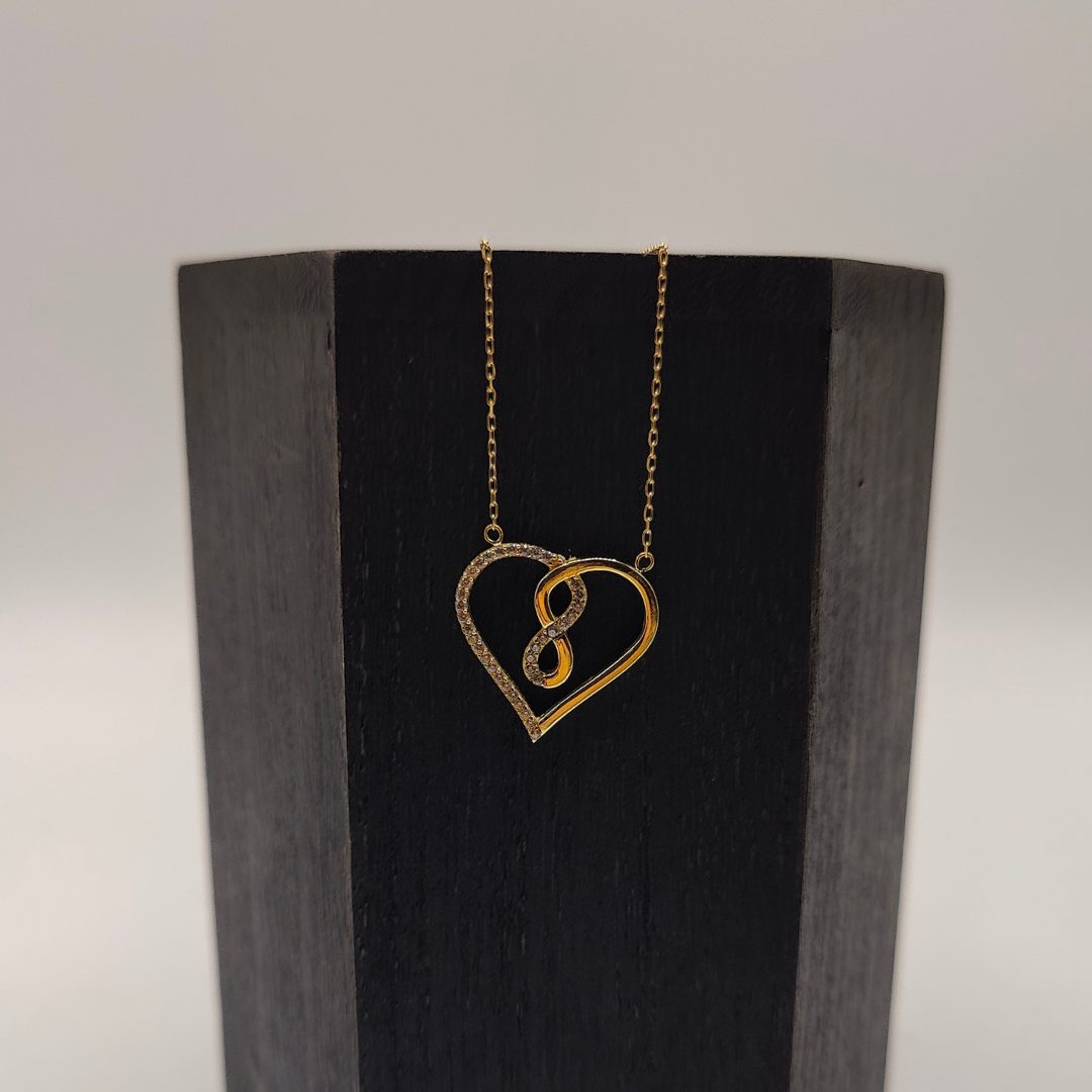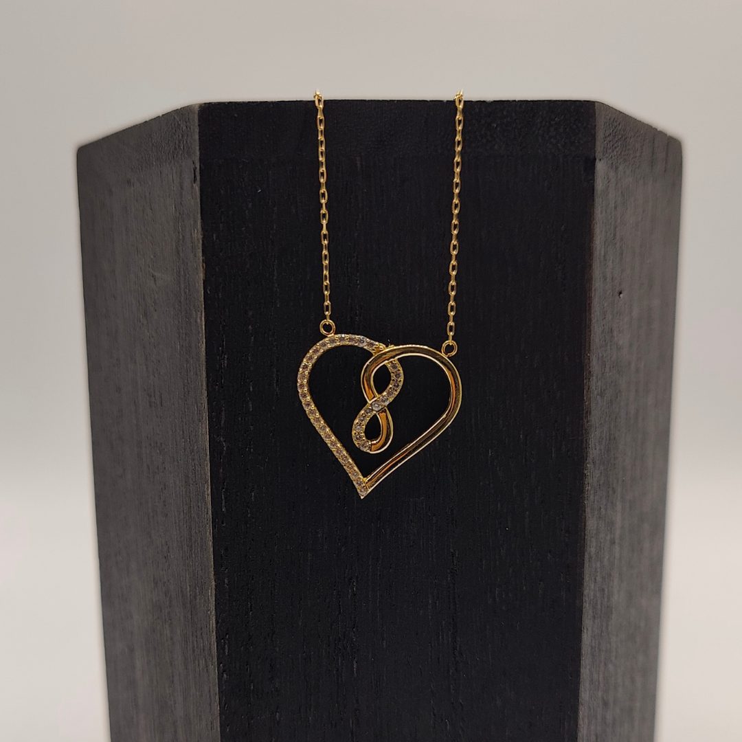 Este hermoso collar de oro 18K simboliza el amor eterno y la conexión infinita con su exquisito dije de corazón entrelazado con un infinito