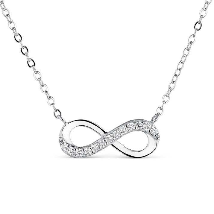 Colgante con cadena de plata rodiado con símbolo infinito y circonitas – 20 mm, 38 + 5 cm