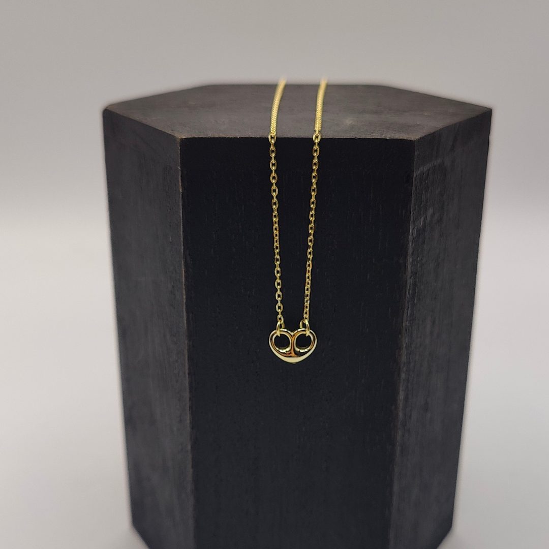 Collar con Cadena Rolo y Colgante Calabrote en Forma de Corazón en Plata Dorada