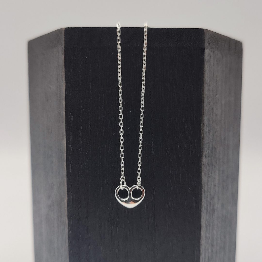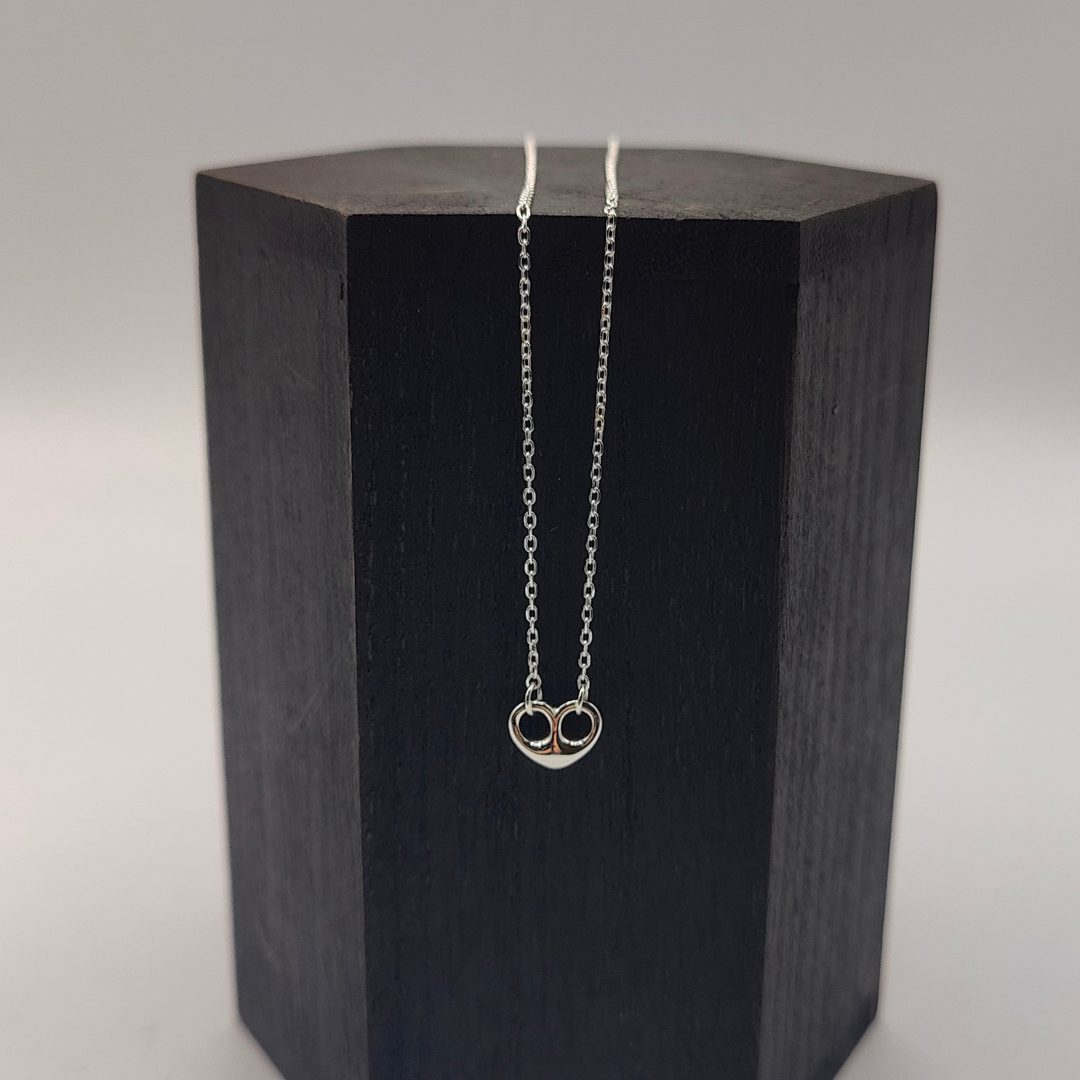 Este elegante collar de plata 925 presenta una resistente cadena rolo y un distintivo colgante calabrote en forma de corazón. Una pieza con carácter y estilo,