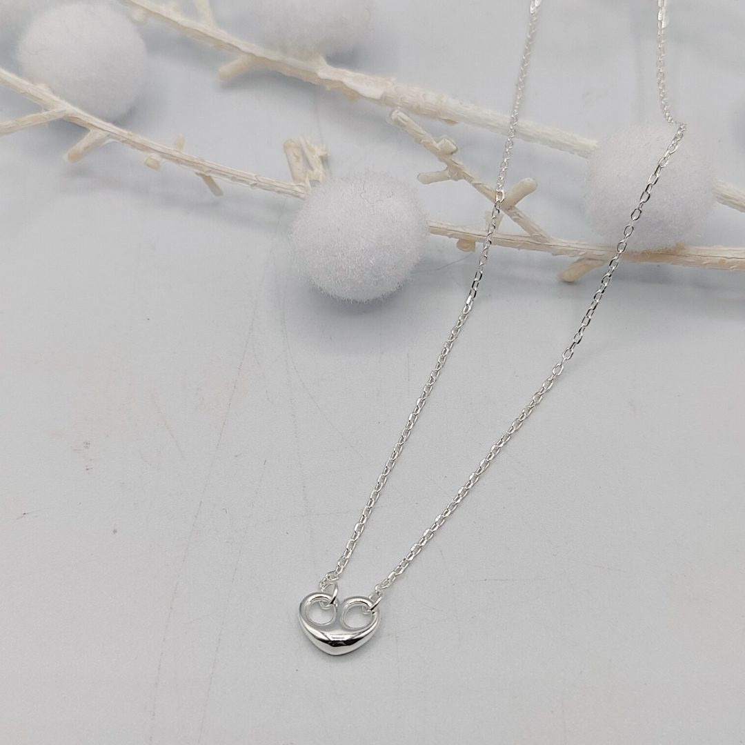 Este elegante collar de plata 925 presenta una resistente cadena rolo y un distintivo colgante calabrote en forma de corazón. Una pieza con carácter y estilo, ideal para quienes buscan un accesorio moderno, sofisticado y lleno de significado.