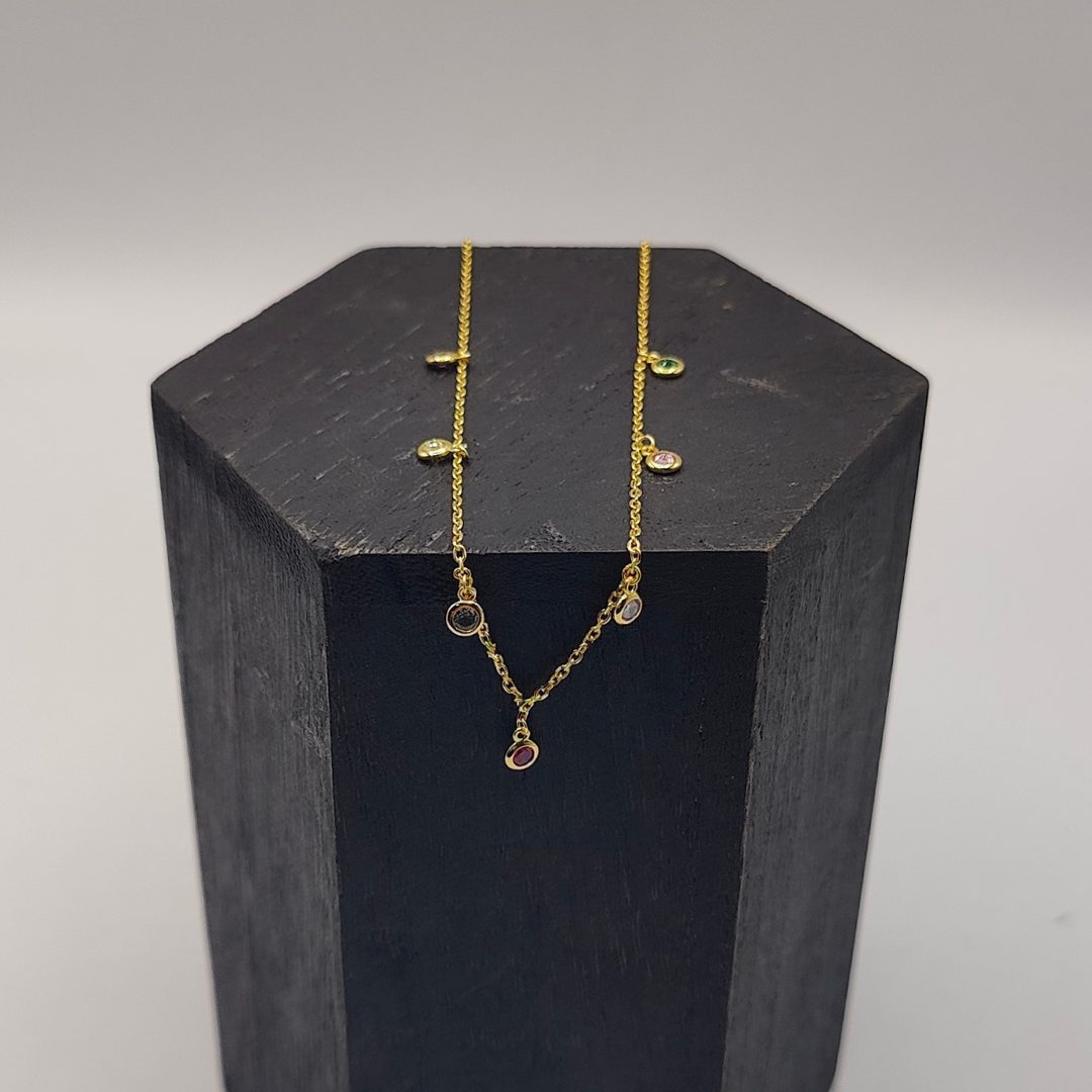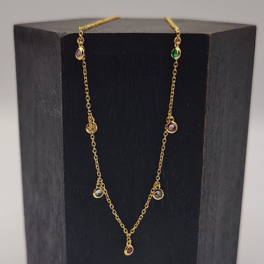 Collar con Charms de Circonitas de Colores en Plata Dorada
