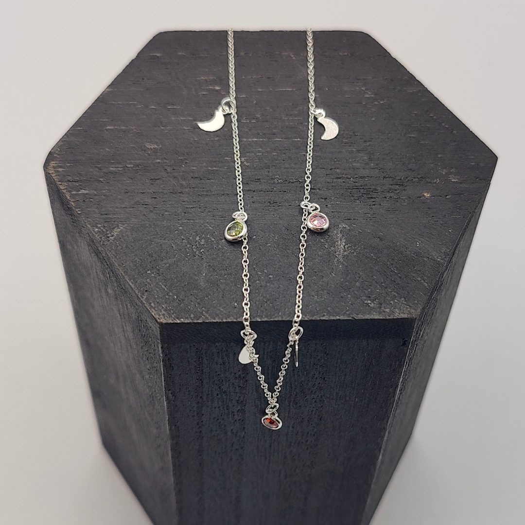 Collar con Charms de Circonitas de Colores y Lunas en Plata