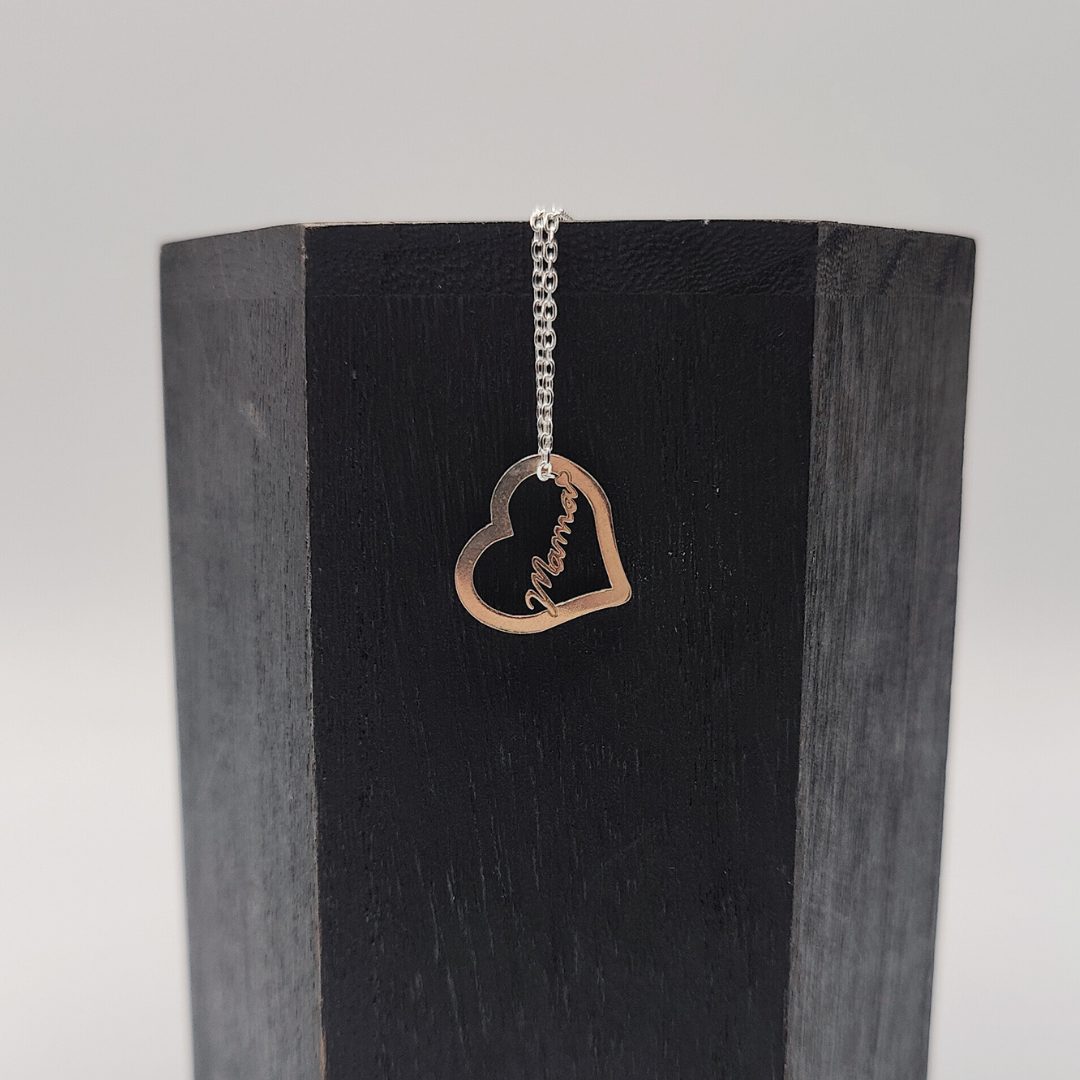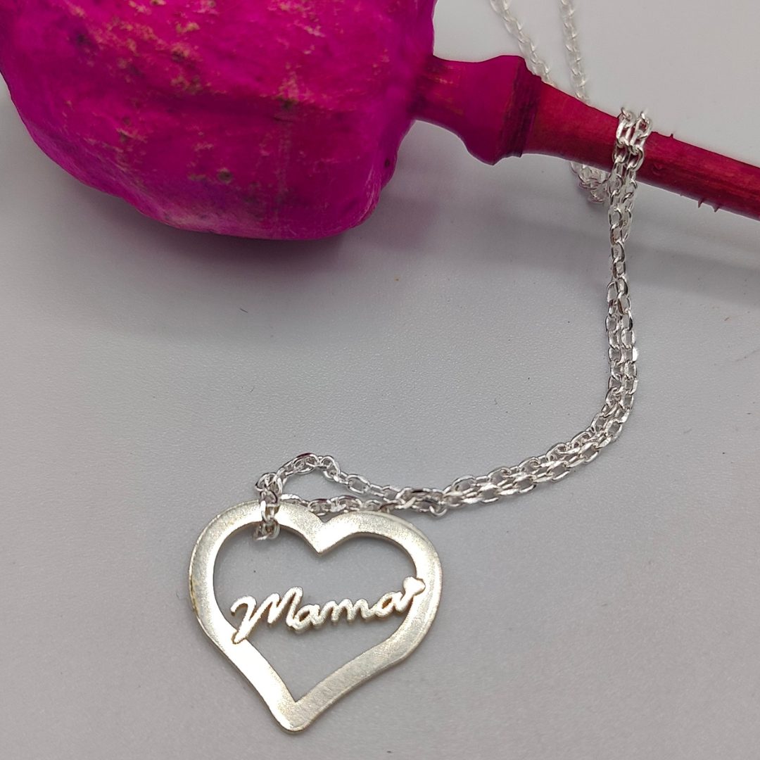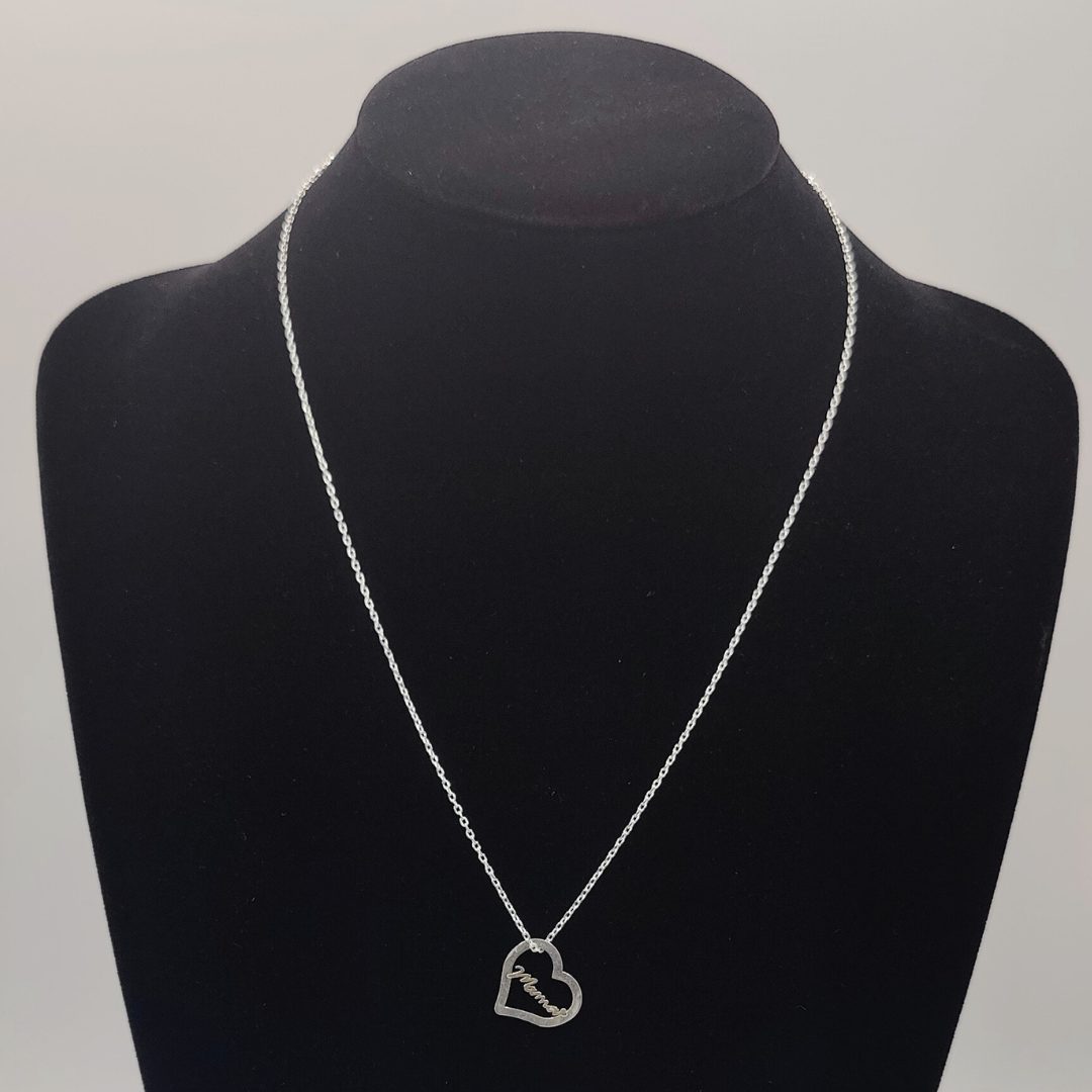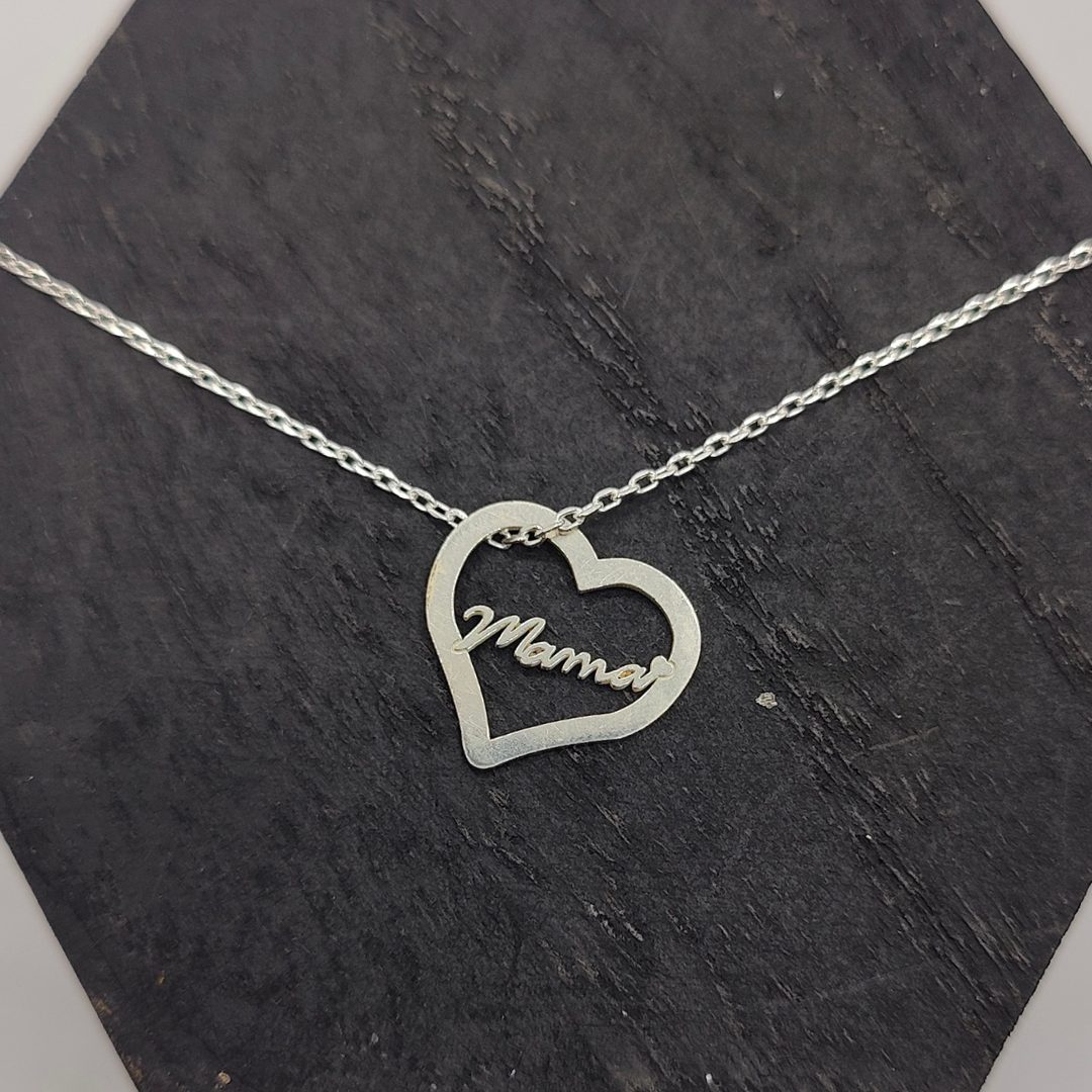 Collar Corazón “Mamá” – Cadena Rolo de Plata