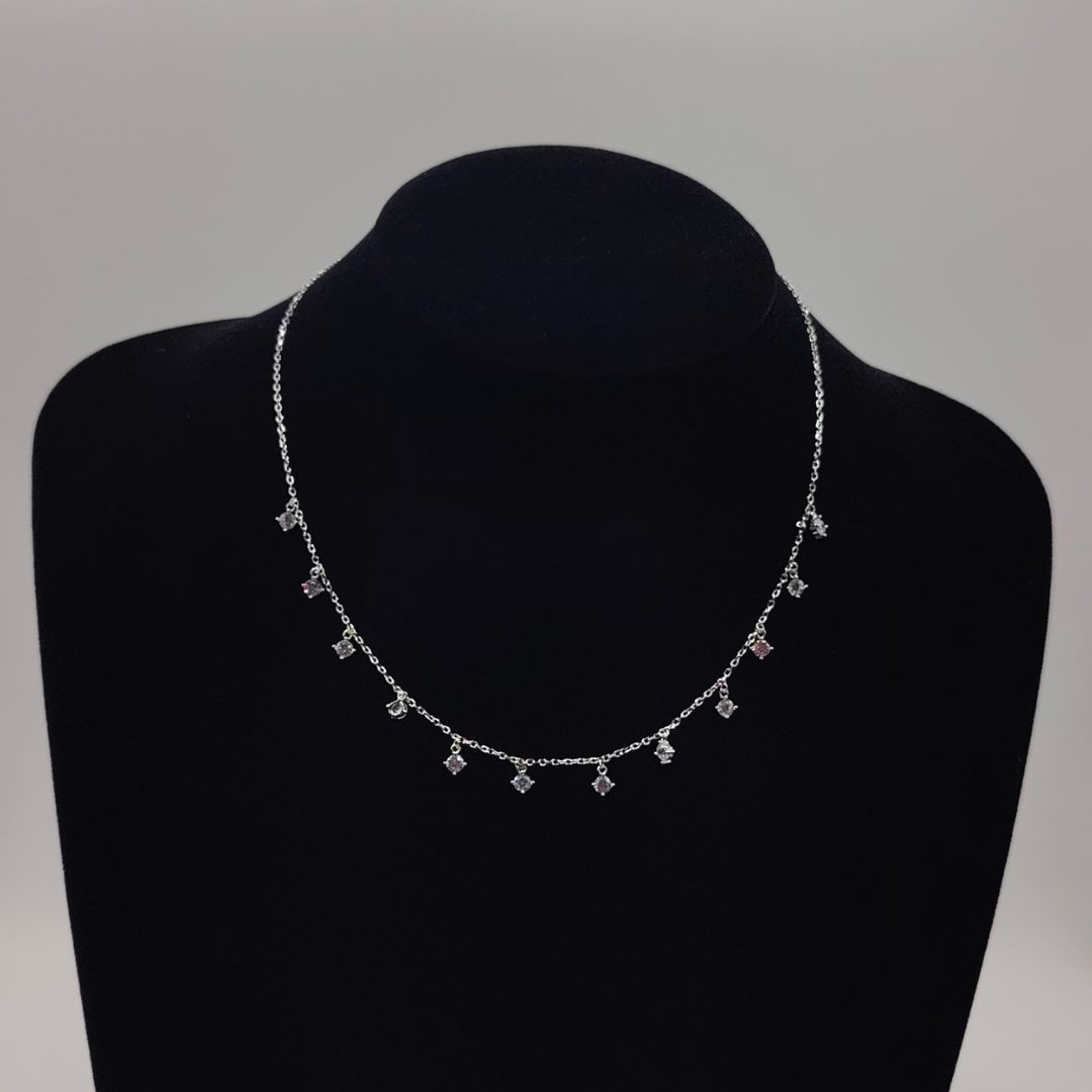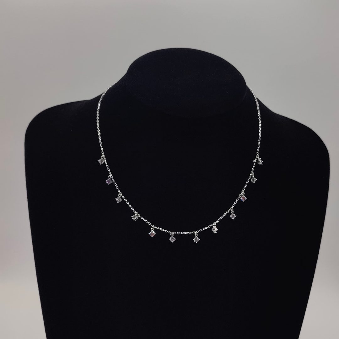 Brillo sutil con un toque moderno. Este collar de plata incorpora delicados charms engastados con circonitas que capturan la luz desde todos los ángulos.
