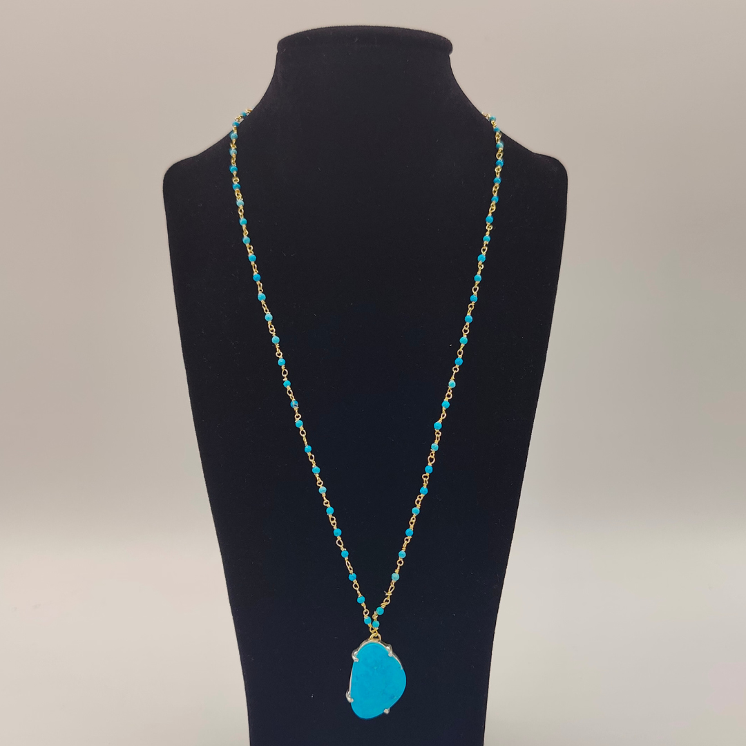 Este collar de plata combina la elegancia del metal con la vibrante belleza de las turquesas, creando un accesorio llamativo y atemporal.