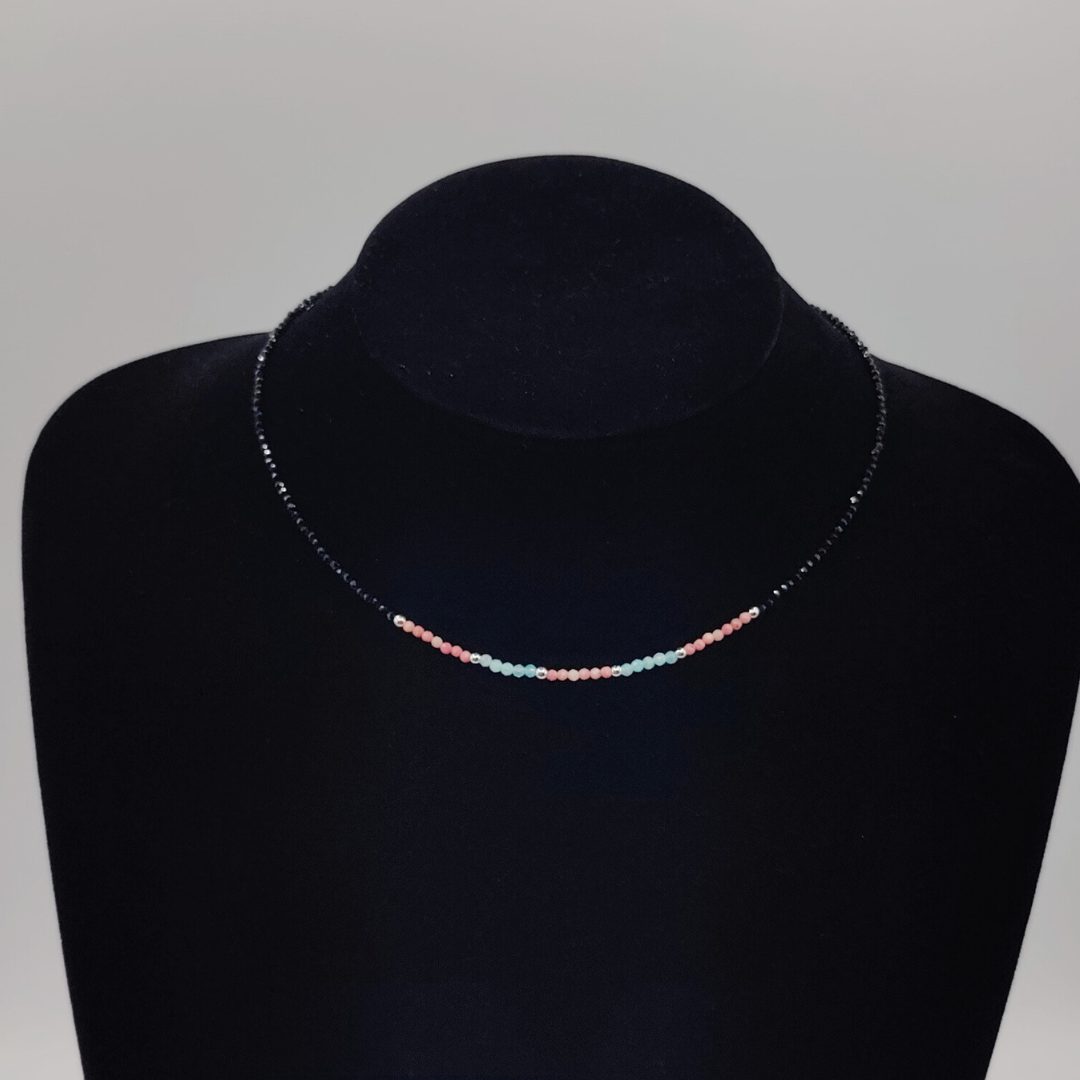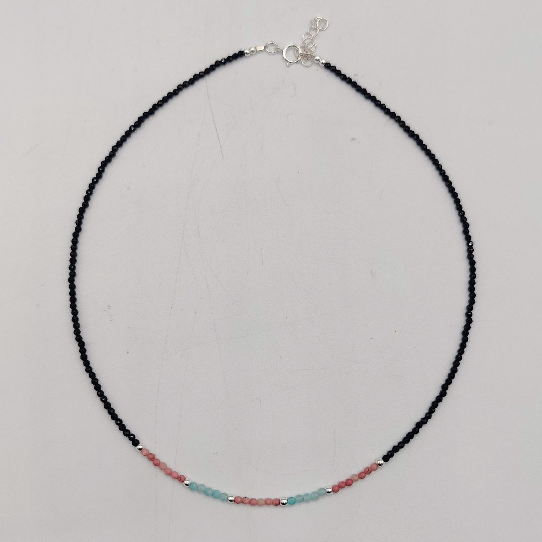 Este impresionante collar de plata 925 está recubierto con una selección de piedras preciosas que añaden un brillo y color excepcionales.