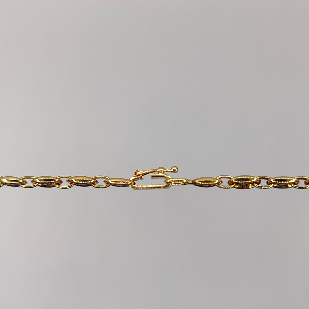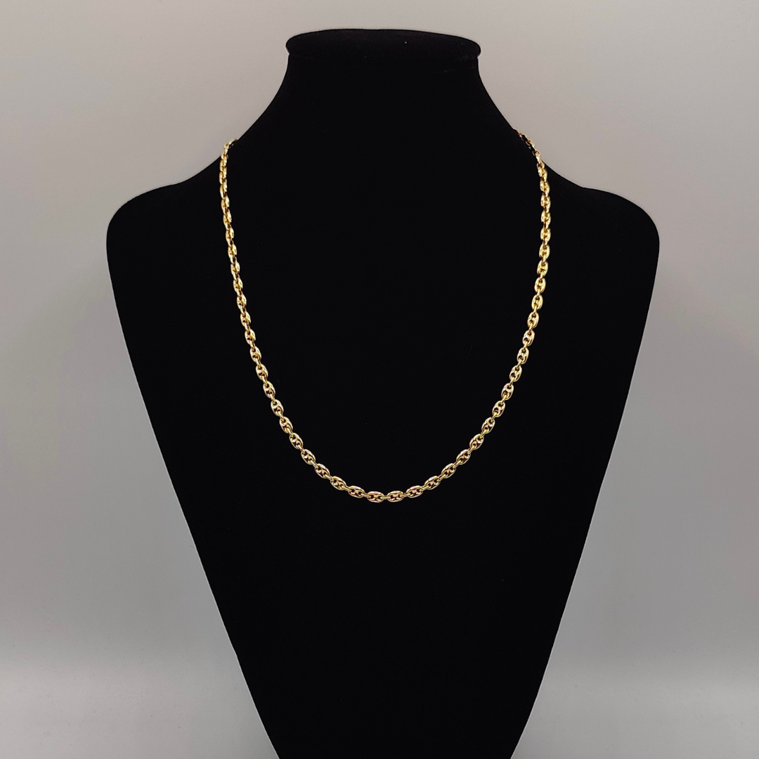 Realza tu estilo con nuestra elegante cadena calabrote de 3 mm de grosor y 50 cm de longitud, elaborada en oro de 18 quilates. Con un diseño sofisticado y un cierre de pato que garantiza seguridad y facilidad de uso, esta cadena es el complemento perfecto para tus colgantes o charms favoritos.