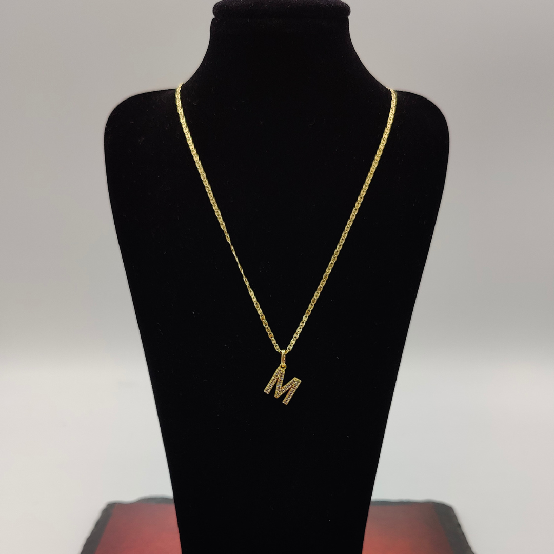 Colgante Letra «M» Relleno de Circonitas en Oro de 18k