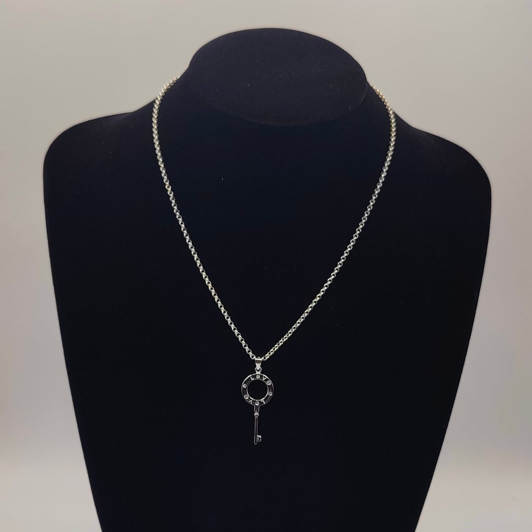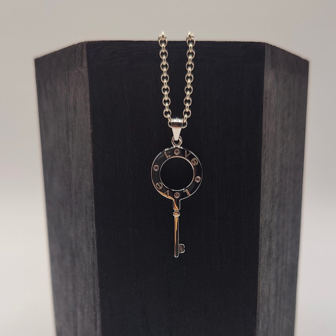 Colgante Llave con Grabado «Love» y 4 Circonitas – Plata