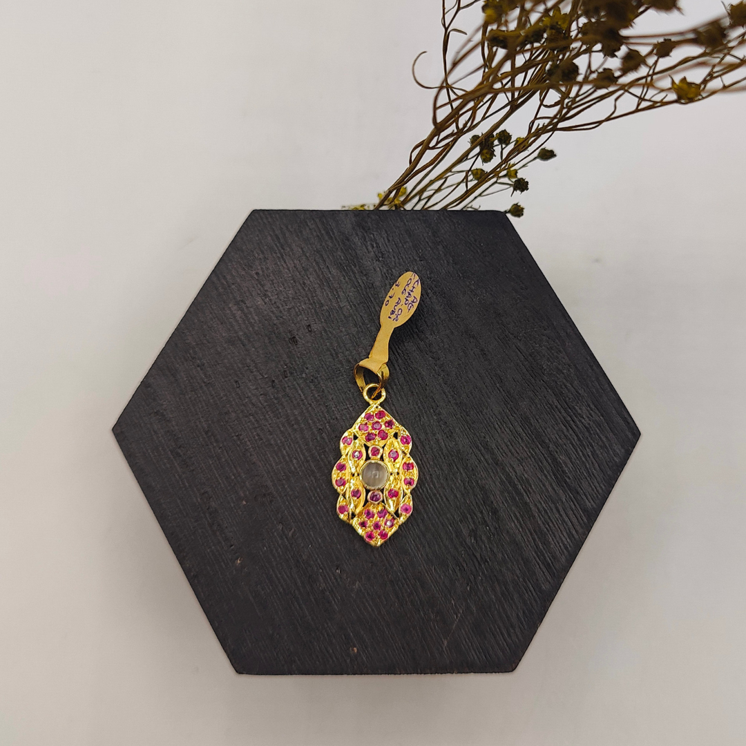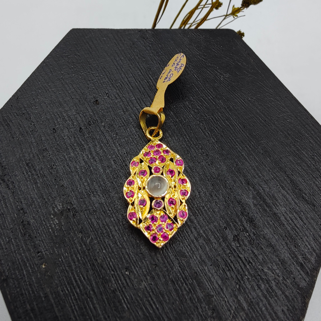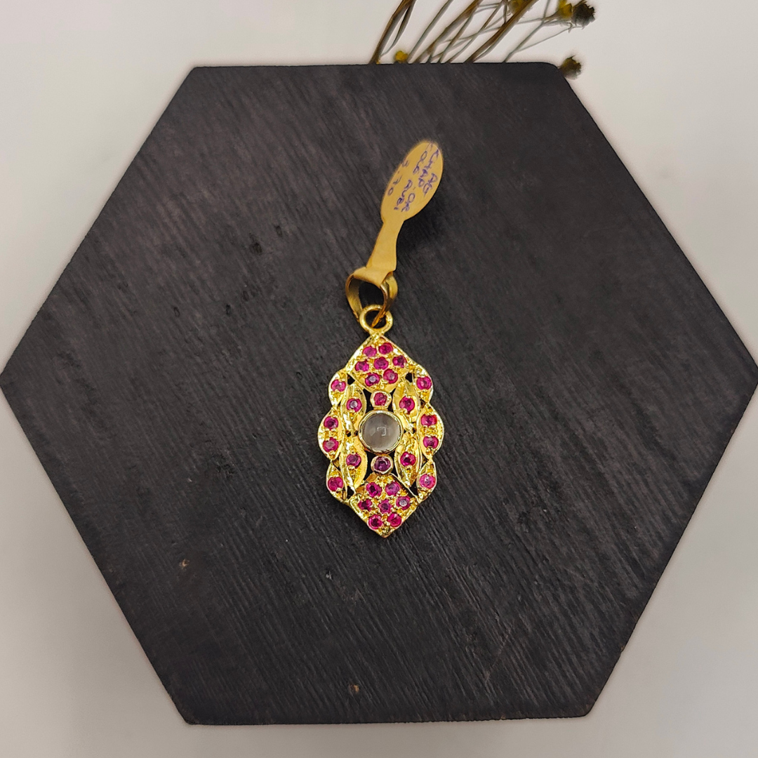 Colgante plata chapado en oro con rubís y en medio piedra luna