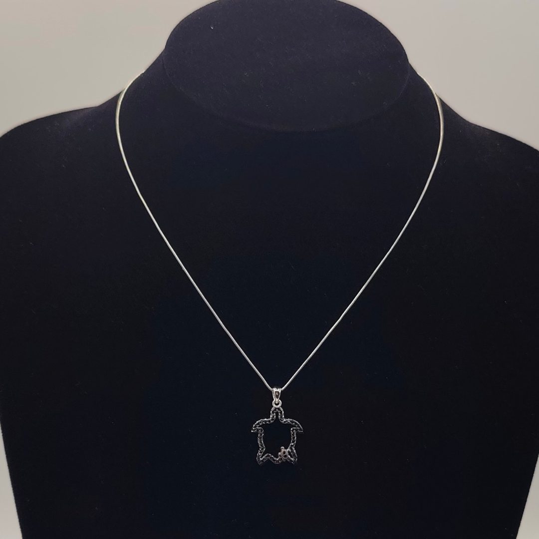 Colgante tortuga recubierta de circonitas negras con una mini tortura