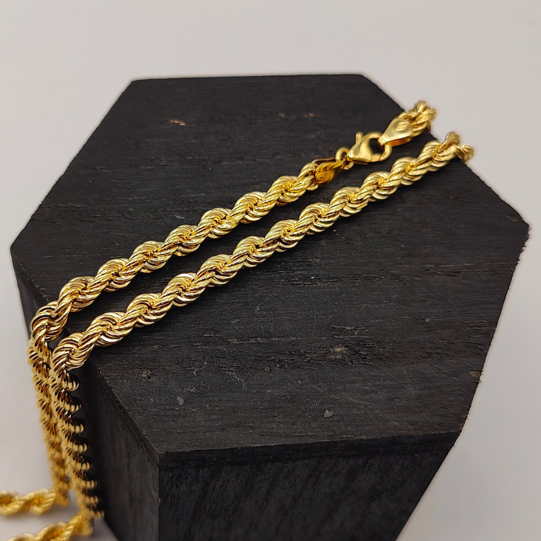 El diseño de cordón presenta un trenzado continuo que le aporta un toque de elegancia atemporal, y sus 6 mm de grosor le otorgan un aspecto sólido y llamativo, sin ser demasiado pesado. Con una longitud de 55 cm, esta cadena se acomoda cómodamente alrededor del cuello, cayendo justo por debajo de la clavícula para un estilo que se adapta tanto a un look casual como a un atuendo más formal.