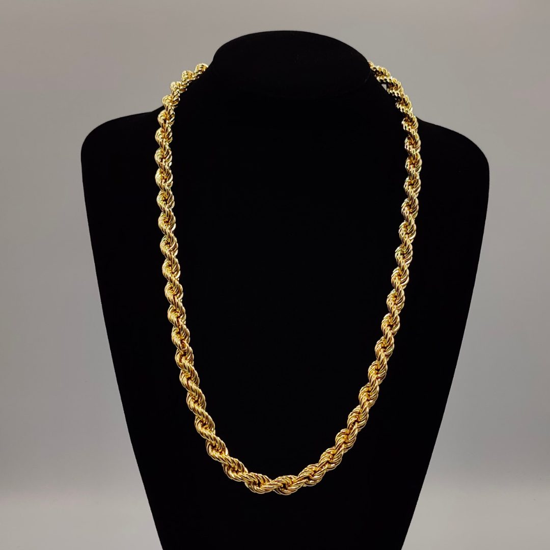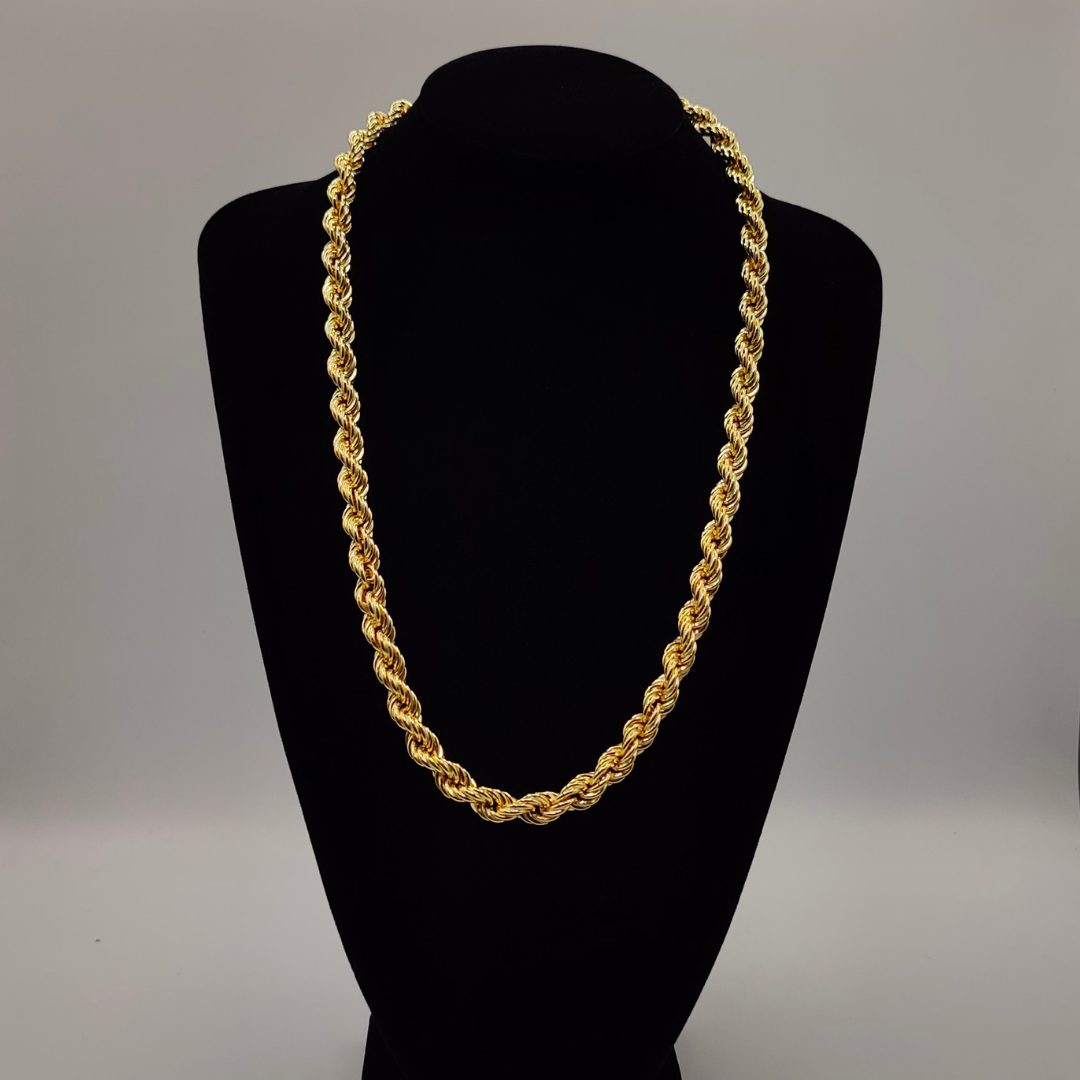 Destaca con esta majestuosa cadena cordón de oro 18K, diseñada para quienes buscan una pieza robusta y elegante. Con 63,8 cm de longitud y un ancho de 10 mm.