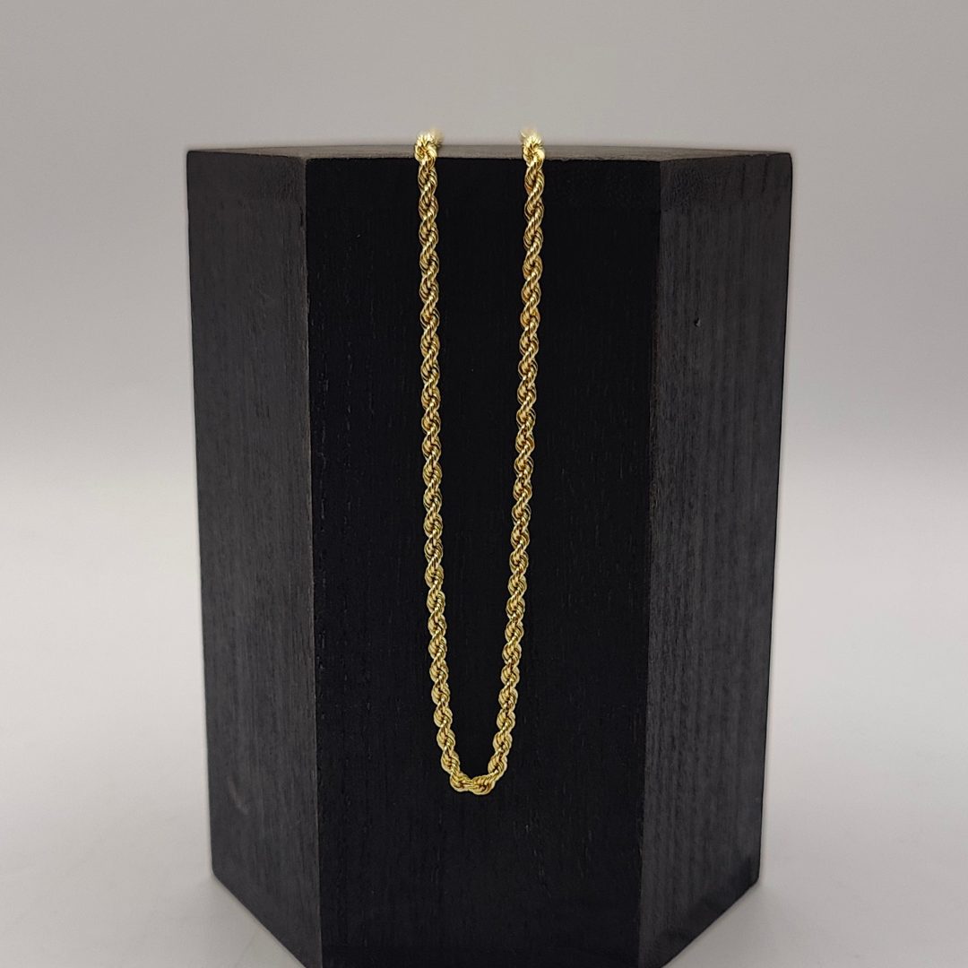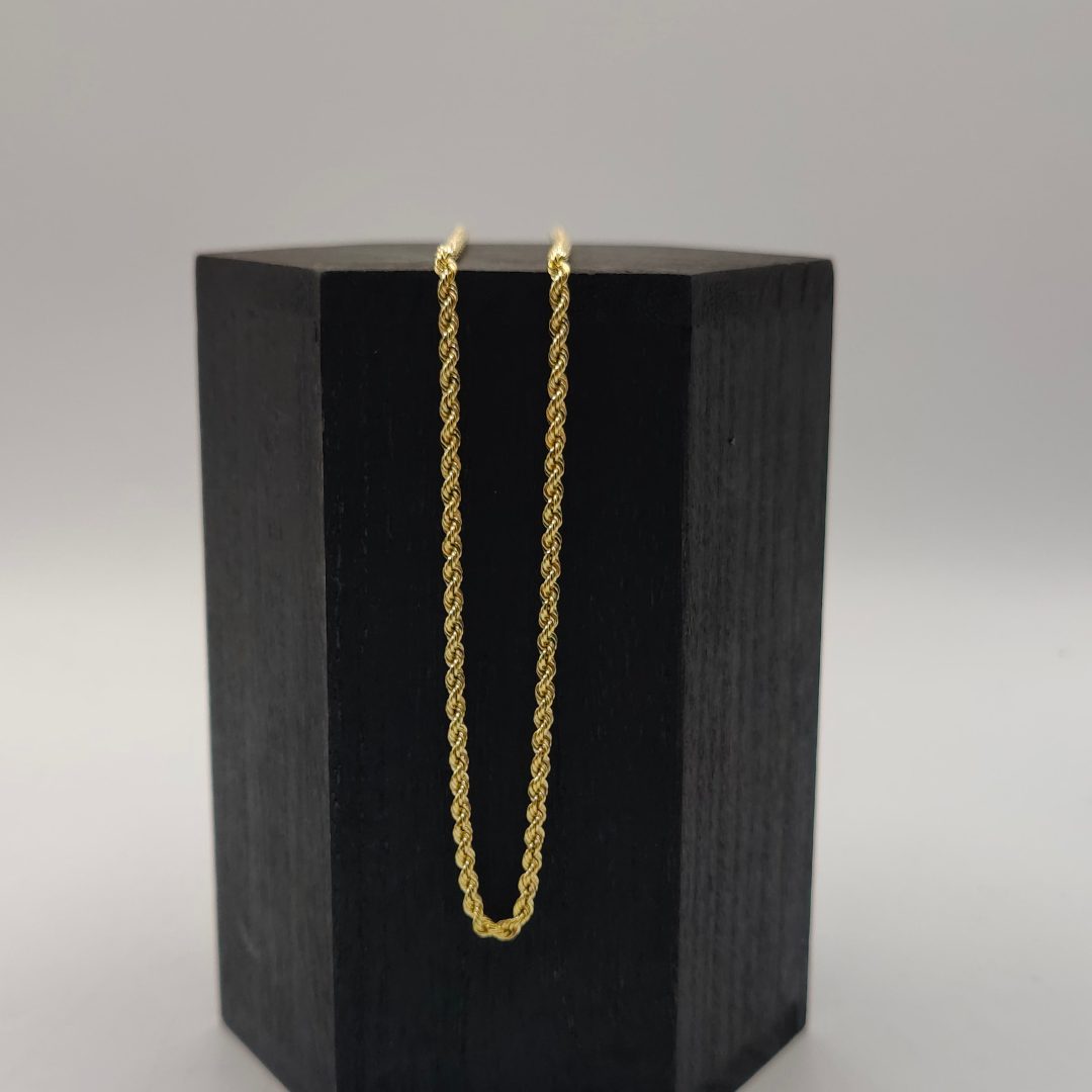 Sencilla y elegante, esta cadena cordón de oro 18K es el complemento perfecto para cualquier ocasión. Con una longitud de 44.3 cm y un grosor de 2 mm, su diseño fino y sofisticado la hace ideal para lucir sola o combinar con un dije especial.