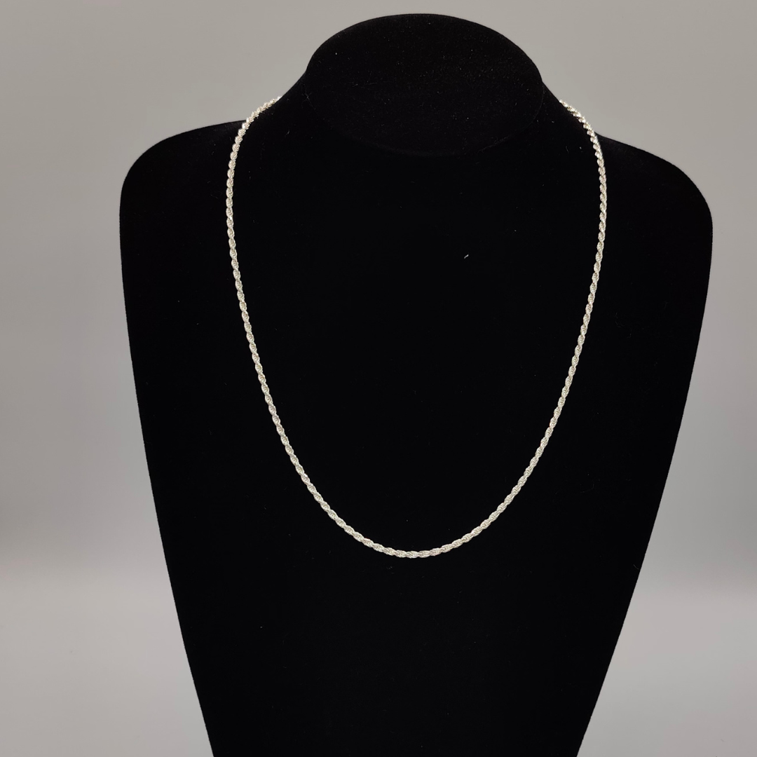 Este cordón de plata adiamantado, con una longitud de 55 cm y un grosor de 2 mm, es una opción elegante y versátil para cualquier colección de joyería.
