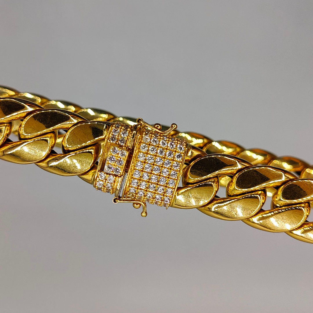 Realza tu estilo con esta elegante cadena cubana, meticulosamente fabricada en oro de 18 quilates. Con un diseño clásico y sofisticado