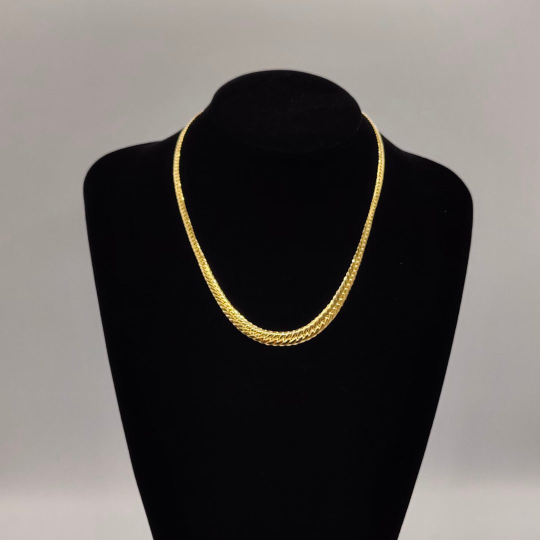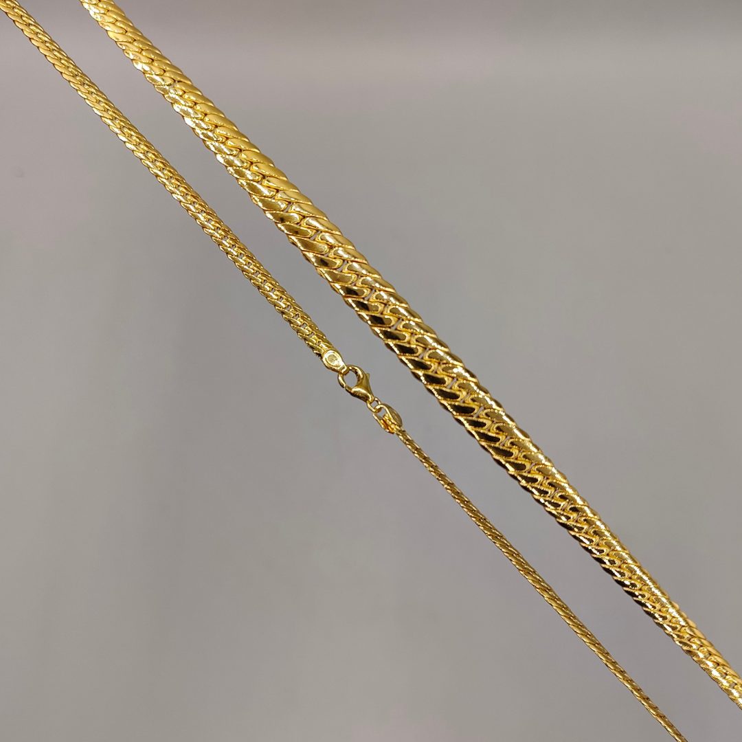 Luce una joya única con este impresionante collar estilo cubano en oro 18K, diseñado con un elegante degradado que va de menos a más. Con una longitud de 44,5 cm, su diseño comienza con un grosor de 3 mm en la parte más estrecha y alcanza hasta 7 mm en la parte más ancha, creando un efecto visual sofisticado y dinámico.