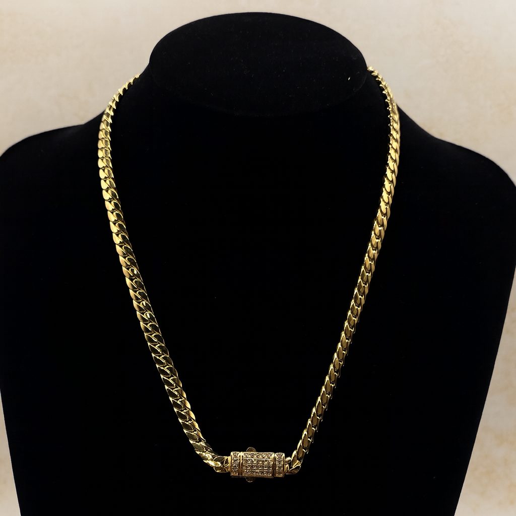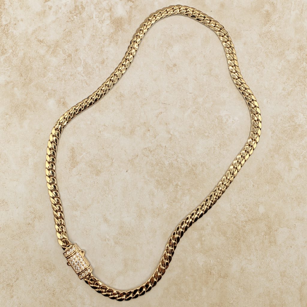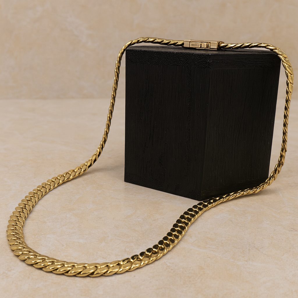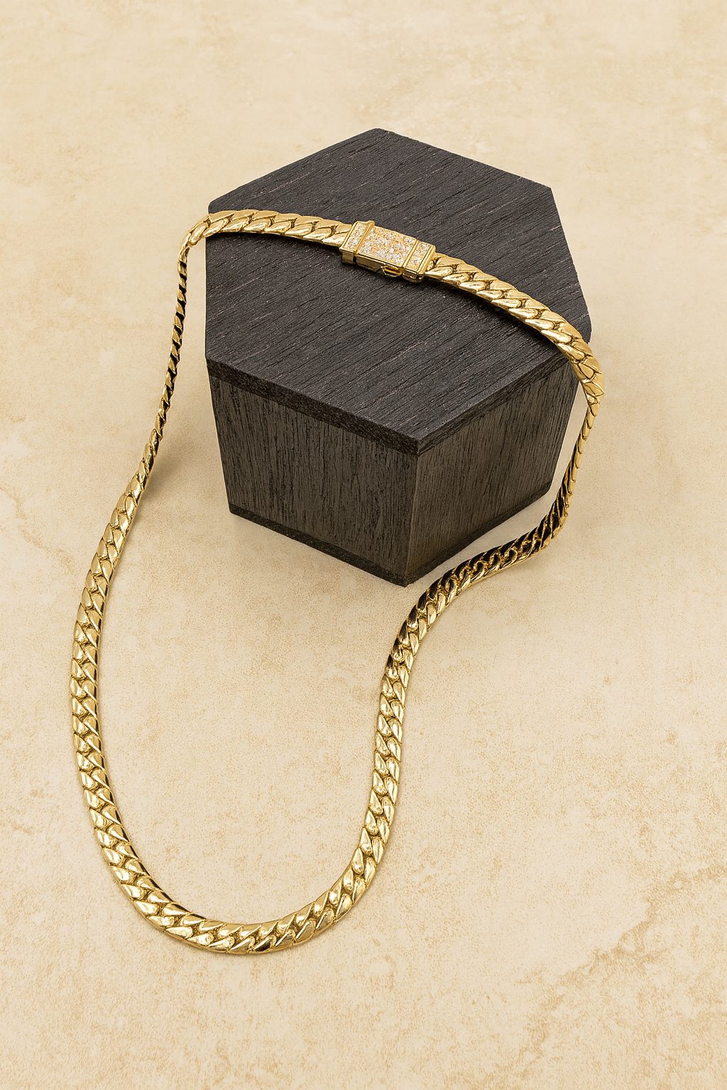 Esta cadena cubana de oro 18 K con cierre de circonita es la elección perfecta para quienes buscan una joya que refleje personalidad, fuerza y distinción. Un clásico del lujo urbano que nunca pasa de moda.