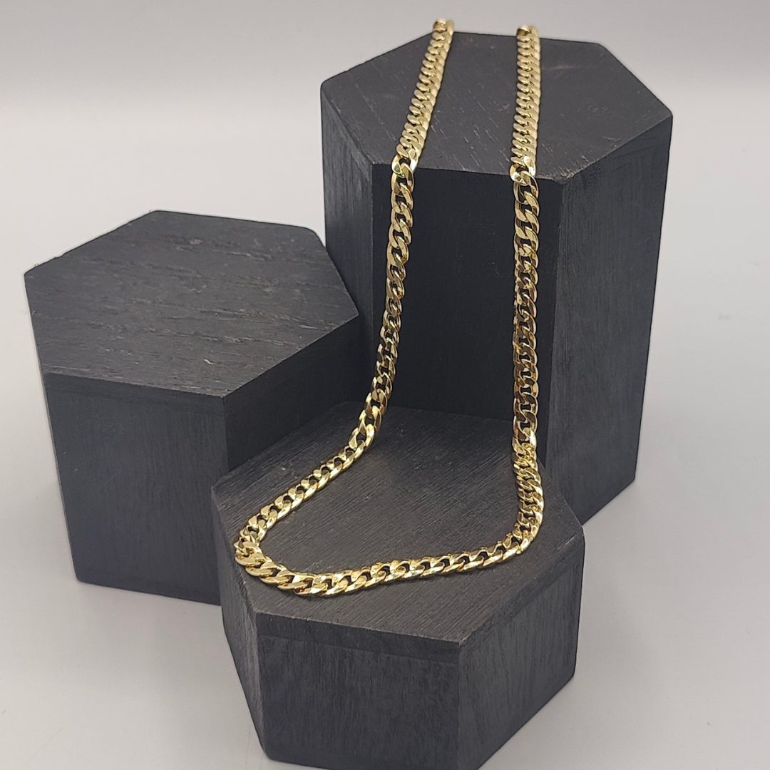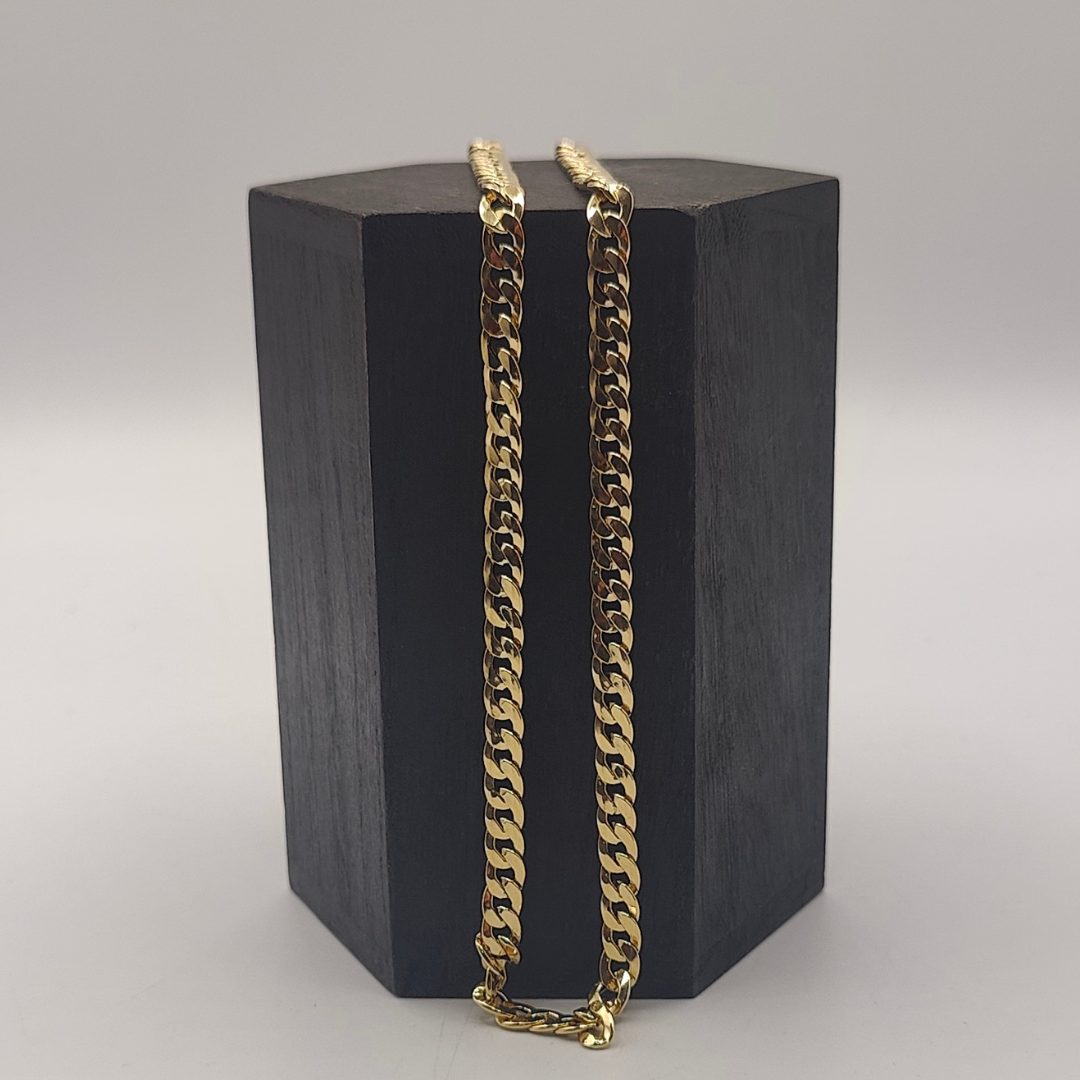 Destaca con la elegancia y el estilo inconfundible de esta cadena cubana de oro 18K . Con una longitud de 59,4 cm y un grosor de 5 mm , esta pieza combina lujo y sofisticación, perfecta para cualquier ocasión.