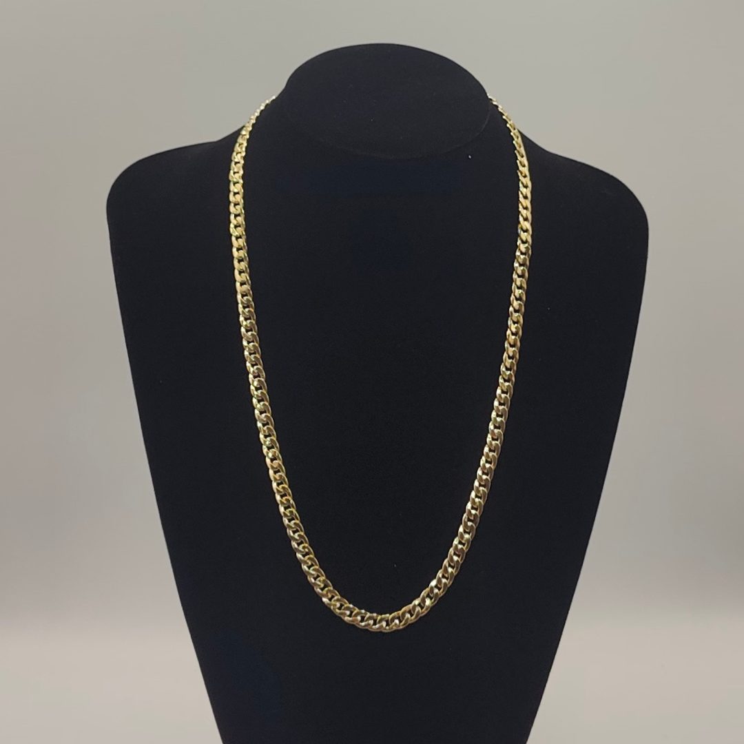 Destaca con la elegancia y el estilo inconfundible de esta cadena cubana de oro 18K . Con una longitud de 59,4 cm y un grosor de 5 mm.