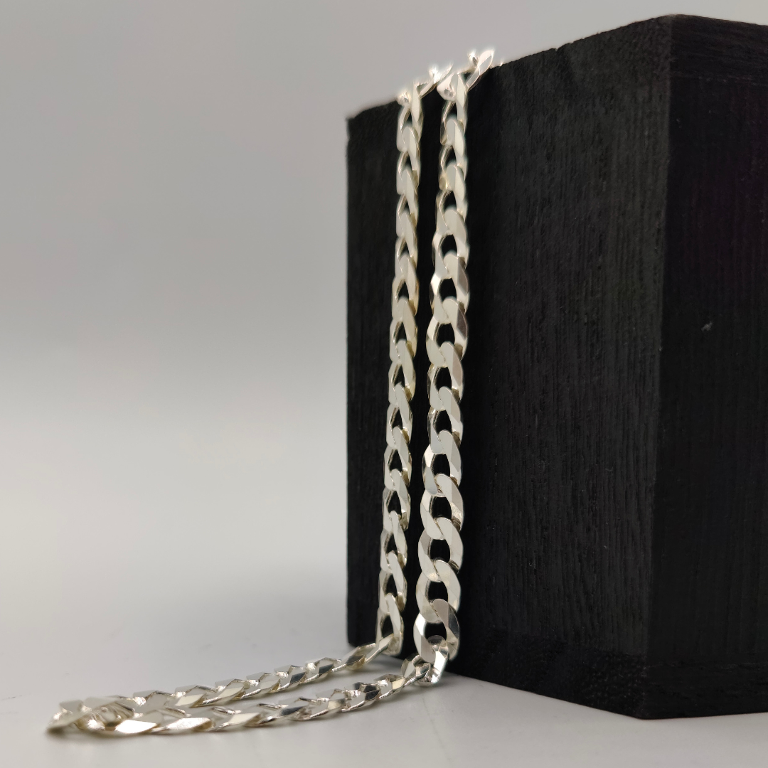 Descubre la elegancia y el estilo atemporal de nuestra Cadena Cubana Plana de Plata. Con una longitud de 49 cm y un ancho de 7 mm