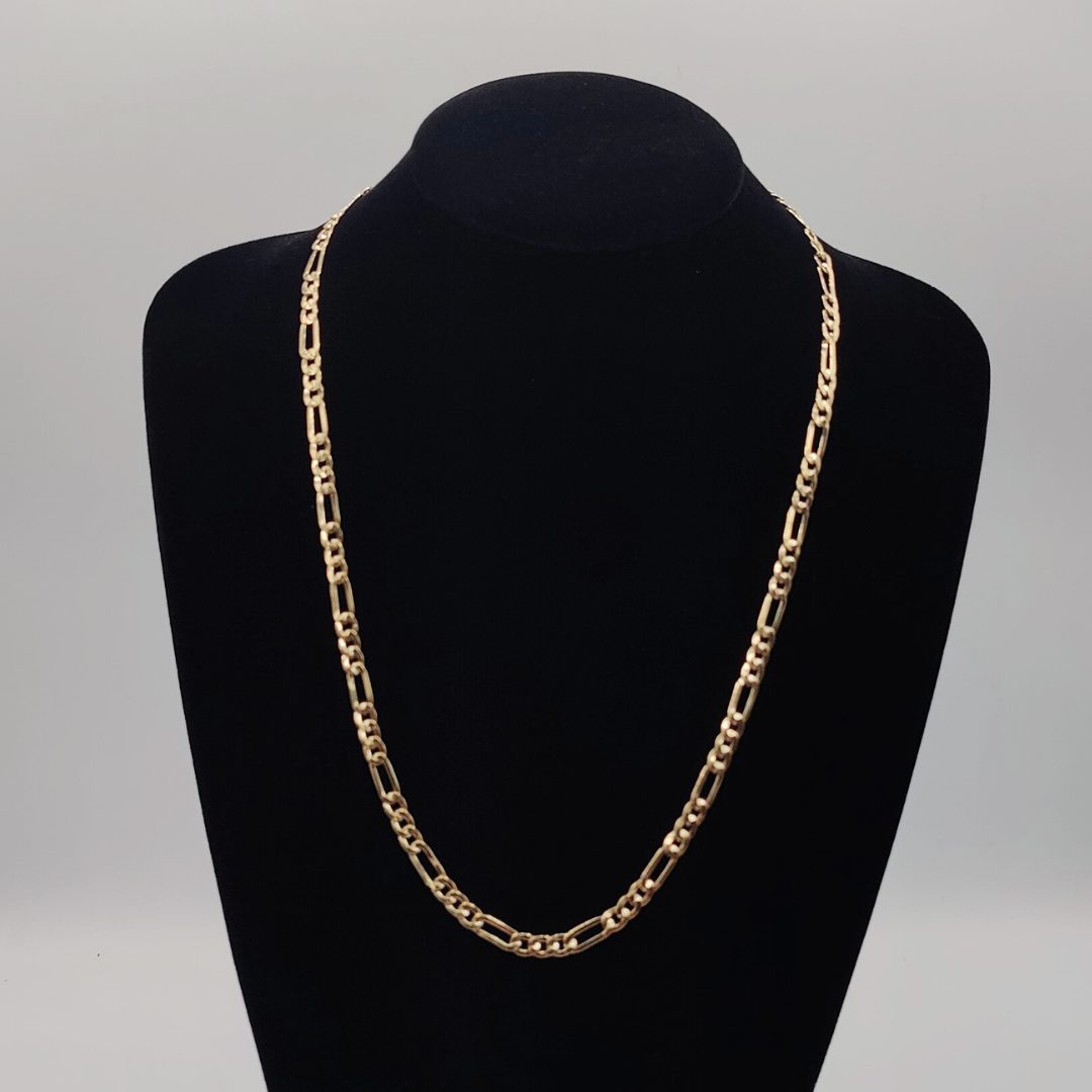 Clásica y elegante, esta cadena Fígaro de 60 cm y 5 mm de ancho está elaborada en oro macizo de 18 quilates. Su icónico patrón alternado de eslabones largos y cortos le aporta un estilo atemporal que combina fuerza y sofisticación. Ideal para llevar sola como pieza destacada o acompañada de un colgante, esta cadena es perfecta para quienes valoran la calidad, el diseño tradicional y la presencia del oro auténtico.