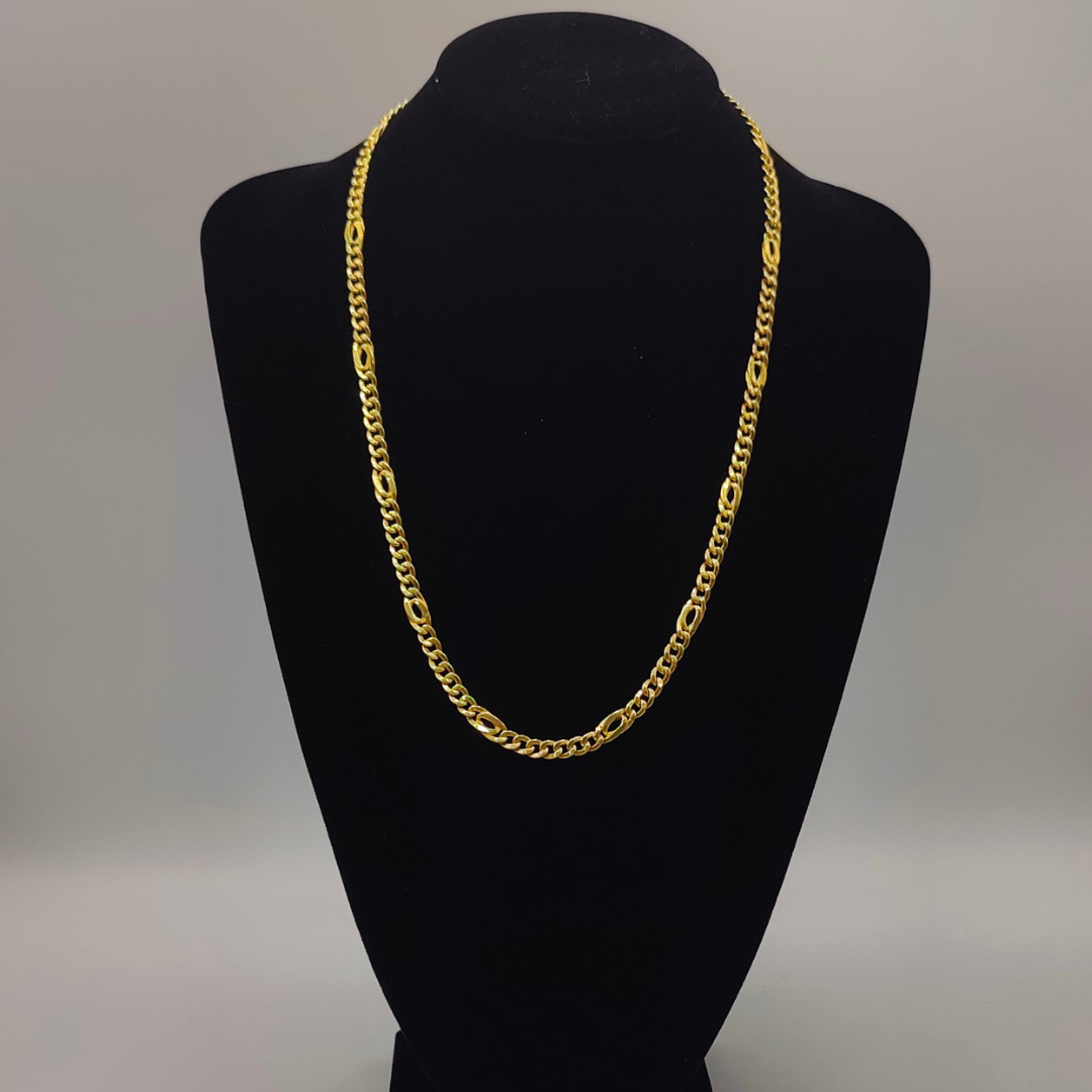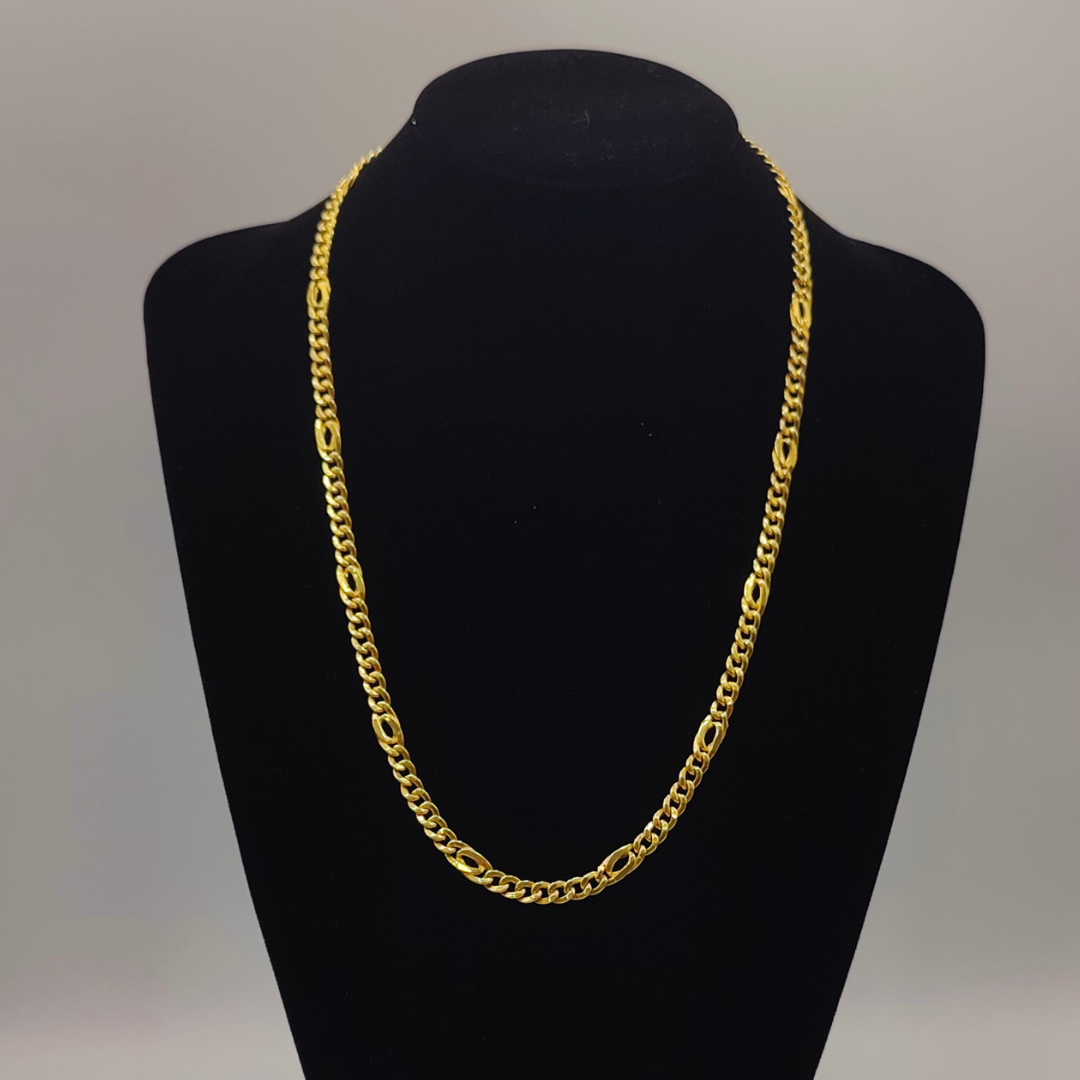 Descubre la distinción de esta cadena Fígaro de 60 cm y 6 mm, con un diseño único que combina eslabones clásicos con el detalle de un eslabón largo doble.