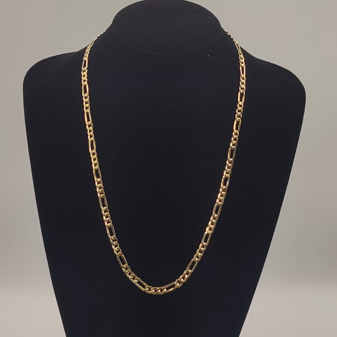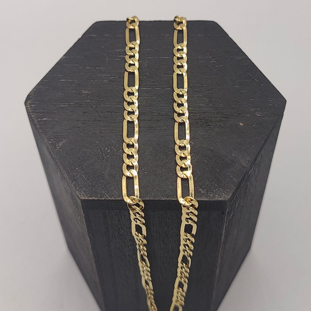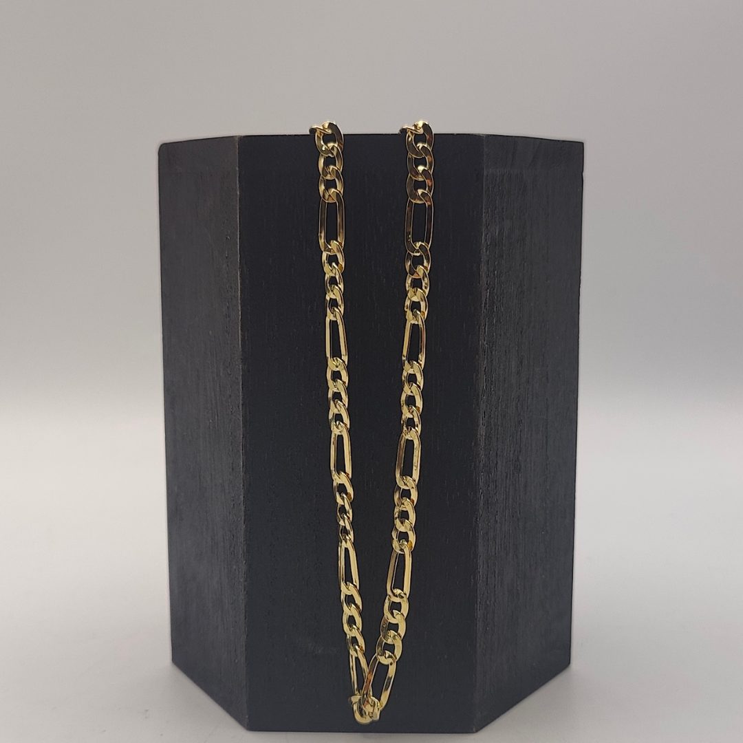 Perfecta para llevar sola o con un dije, esta cadena Fígaro es una excelente elección para quienes buscan un accesorio refinado y de alta calidad. ¡Un imprescindible en tu colección de joyas!