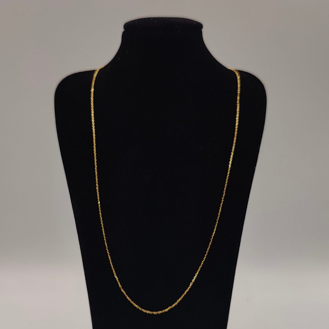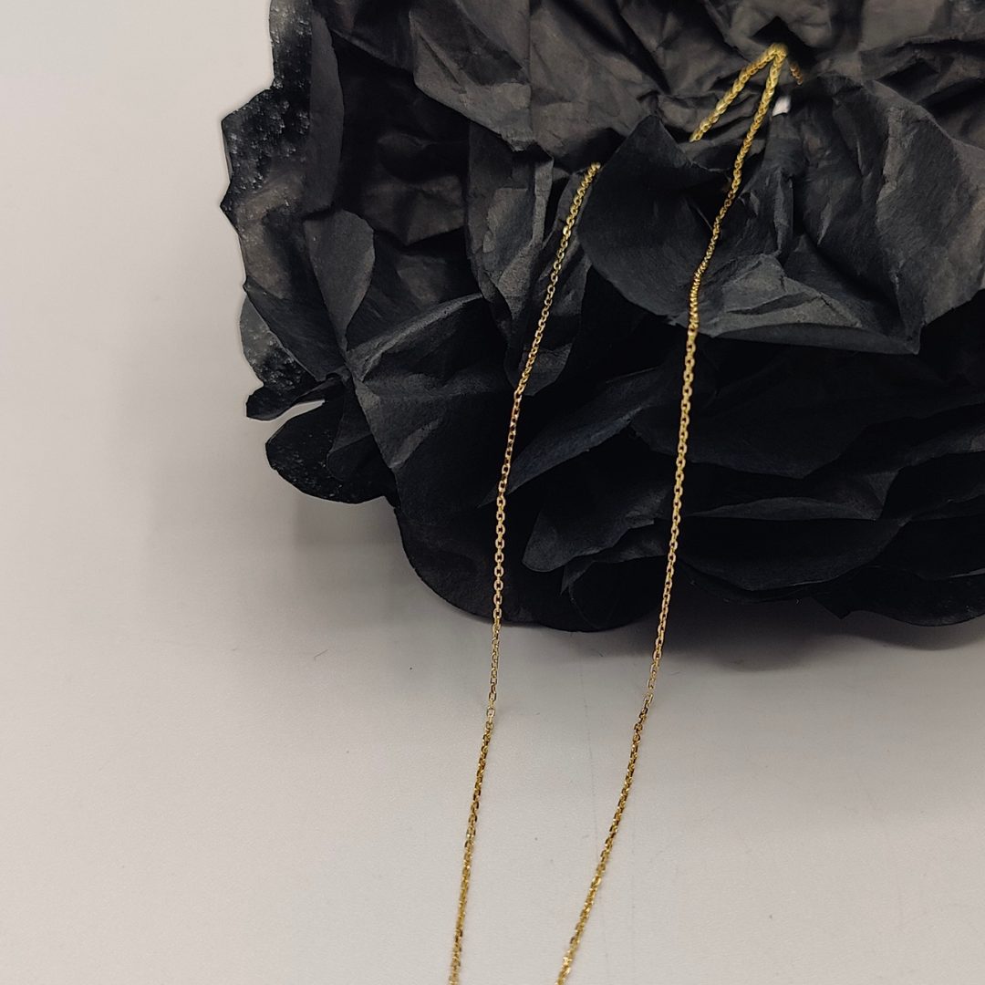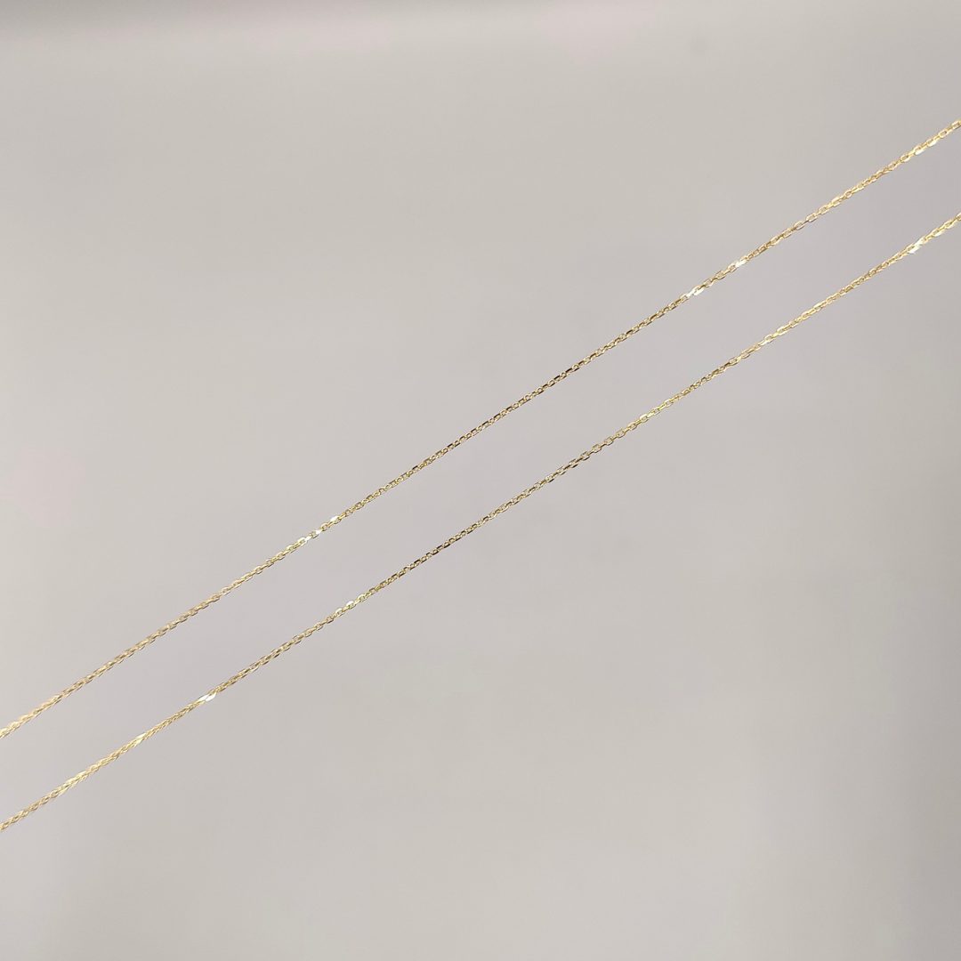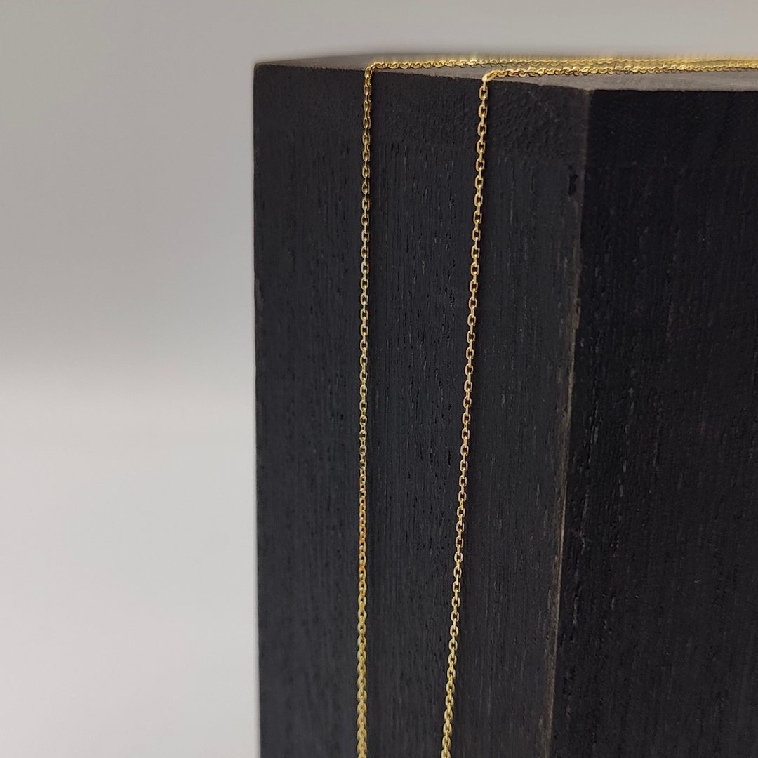 Con un diseño fino de 0,5 mm de grosor, esta cadena combina sutileza y elegancia, perfecta para quienes buscan un accesorio ligero y versátil. Su longitud de 45 cm la hace ideal para lucir sola o con dijes pequeños, adaptándose a cualquier estilo y ocasión.