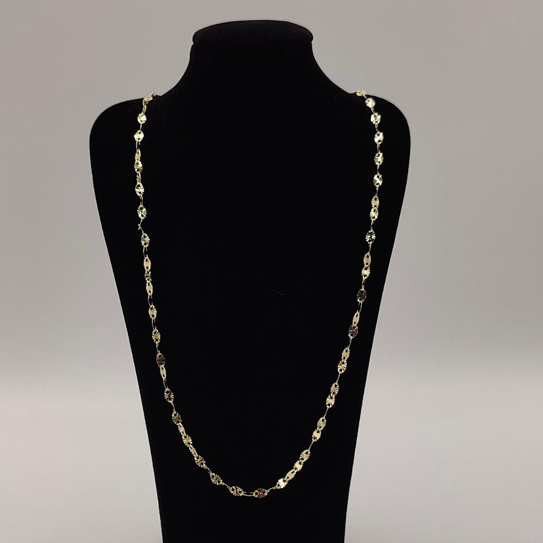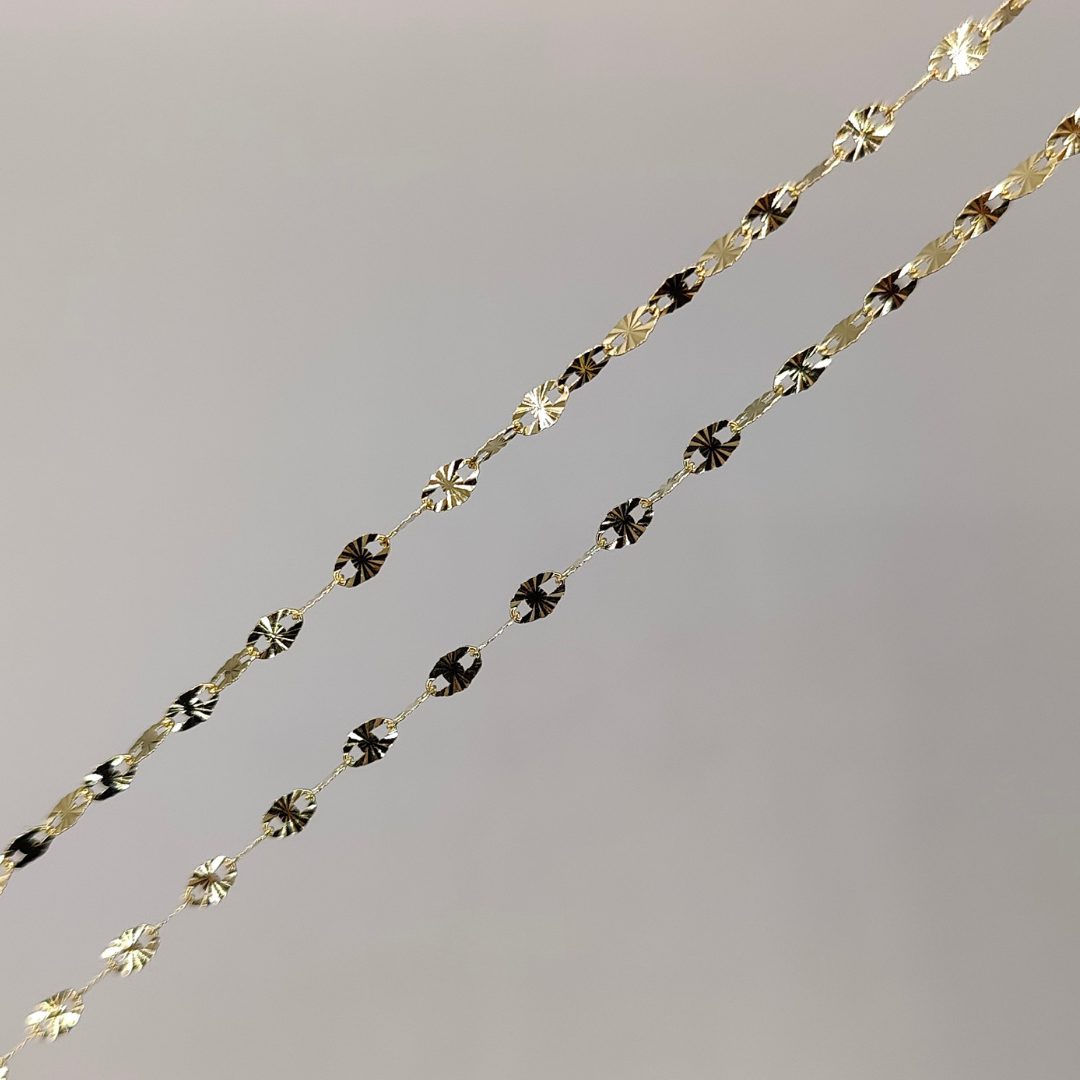 Realza tu estilo con esta exclusiva cadena rolo de oro 18K, diseñada con eslabones especiales adiamantados que destacan por su brillo excepcional y su acabado impecable. Su diseño único combina elegancia y modernidad, convirtiéndola en una pieza ideal para quienes buscan un accesorio que marque la diferencia.