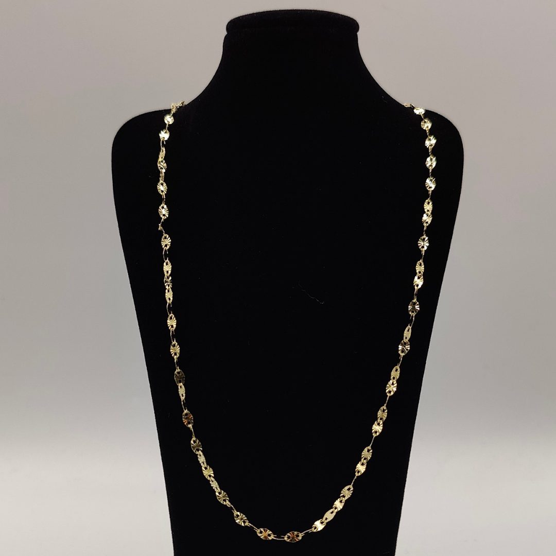 Realza tu estilo con esta exclusiva cadena rolo de oro 18K, diseñada con eslabones especiales adiamantados que destacan por su brillo excepcional y su acabado impecable.