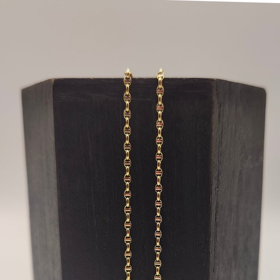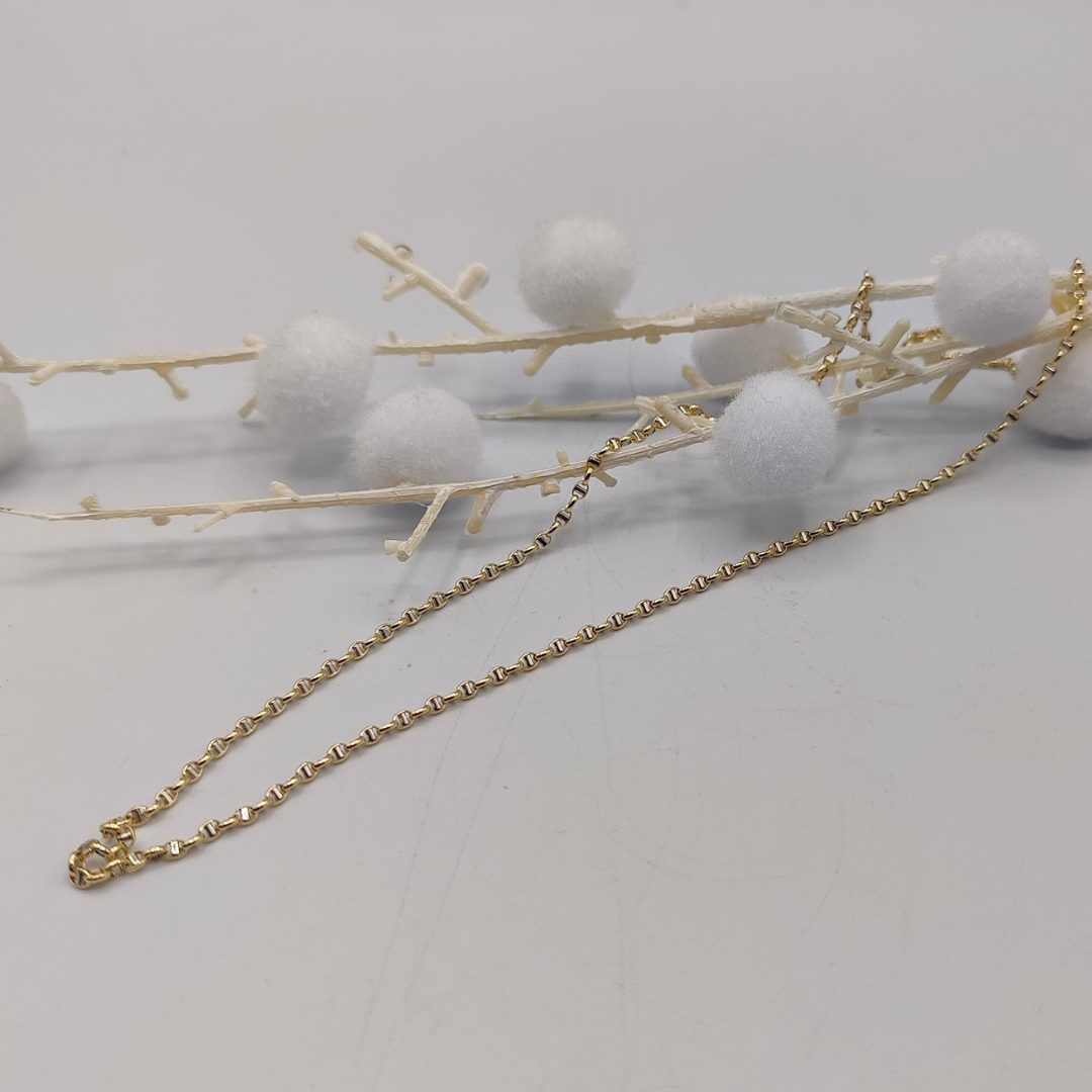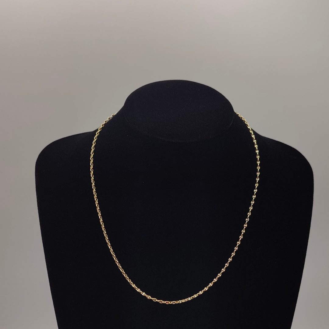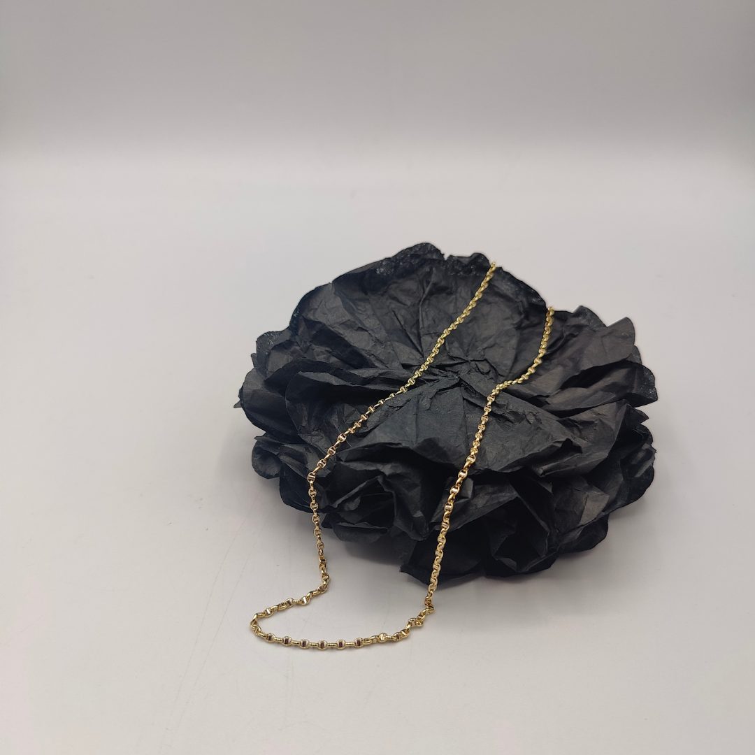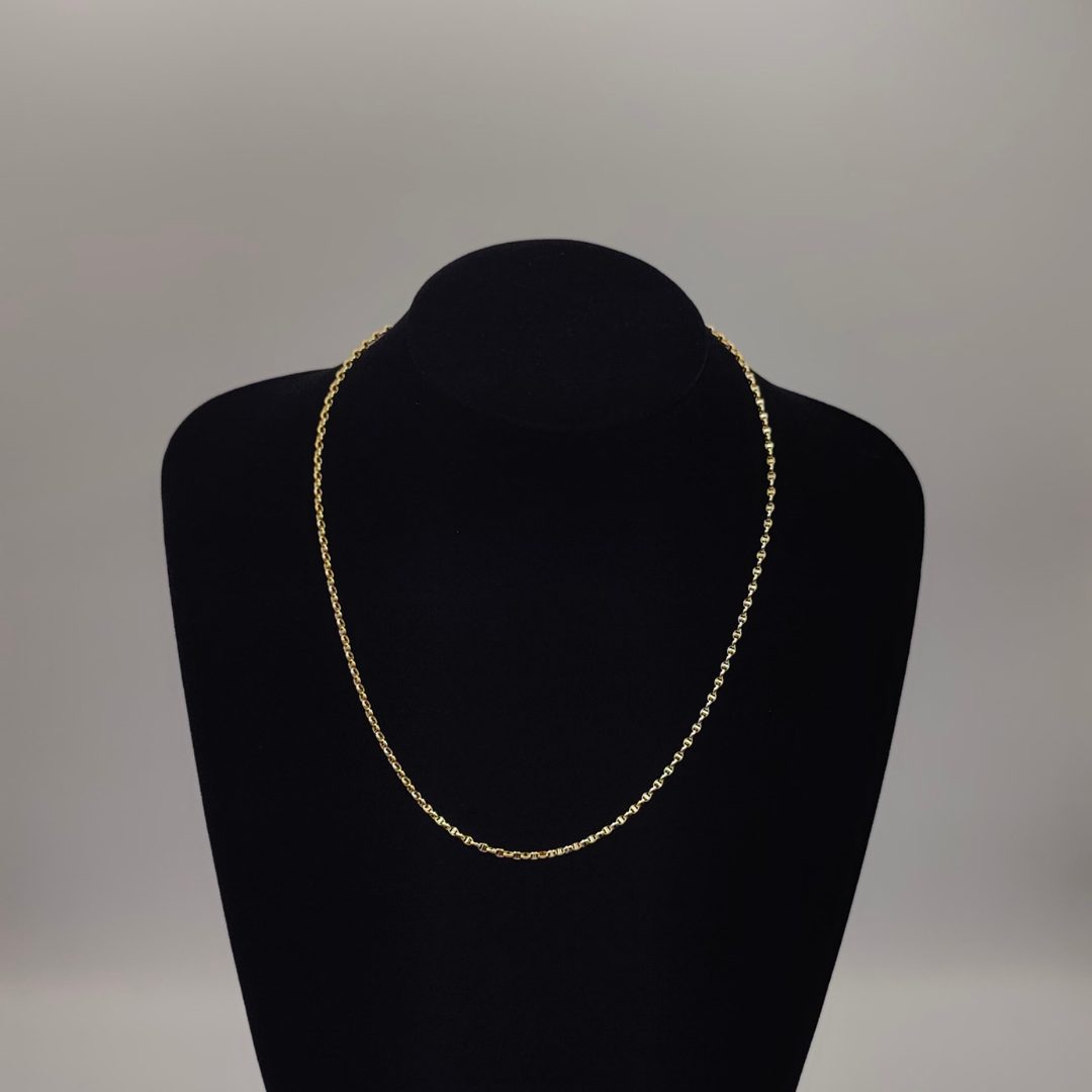 Este elegante collar de 49,9 cm de largo y 2 mm de grosor presenta una cadena rolo con detalles sutiles en oro blanco, fabricado en oro de 18K. Su diseño refinado y versátil lo convierte en el accesorio perfecto para complementar cualquier look, aportando un toque de sofisticación y luminosidad. Ideal para ocasiones especiales o para el uso diario, este collar ofrece un estilo delicado y atemporal.