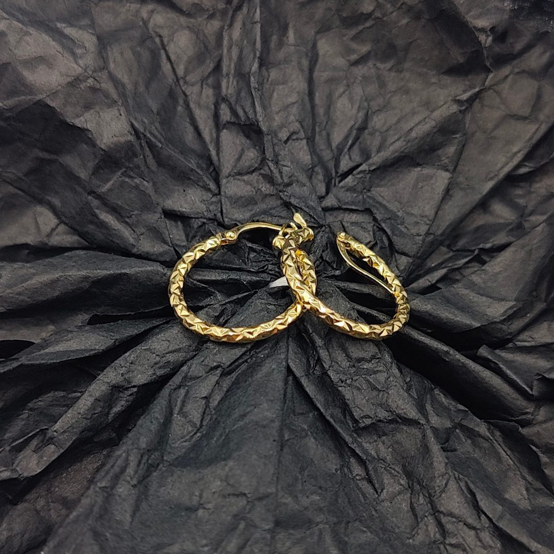 Este elegante pendiente de aro de 2 cm de diámetro y 2 mm de ancho presenta una delicada textura que aporta sofisticación y detalle a tu look. Fabricado en oro de 18K, ofrece una pieza de alta calidad que combina versatilidad y estilo. Con cierre hippy para un ajuste cómodo y seguro, es el complemento perfecto para quienes buscan una joya discreta pero con un toque de distinción. Ideal para cualquier ocasión.