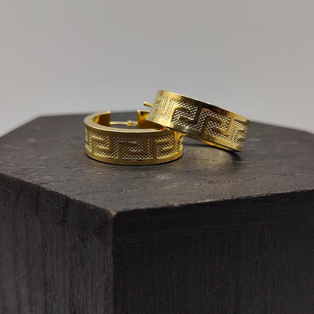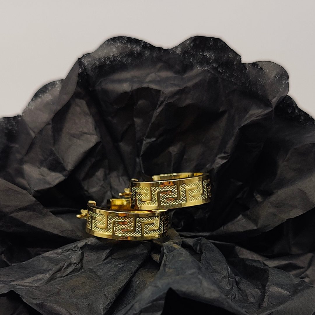 Descubre la elegancia y el estilo atemporal con nuestro pendiente aro de 8 mm de ancho y 23 mm de diámetro, inspirado en el icónico diseño de Versace.