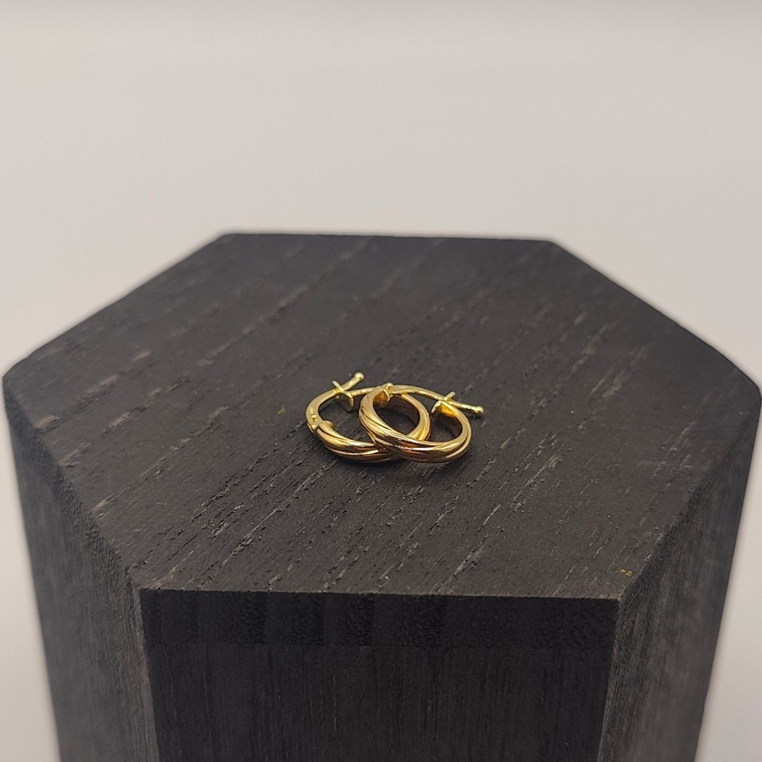 Este elegante pendiente de aro, levemente rizado, está elaborado en oro de 18 quilates, ofreciendo una pieza sofisticada y de diseño sutil. Con un diámetro de 12 mm, su tamaño es perfecto para un look elegante pero discreto, añadiendo un toque moderno y refinado a tu estilo.